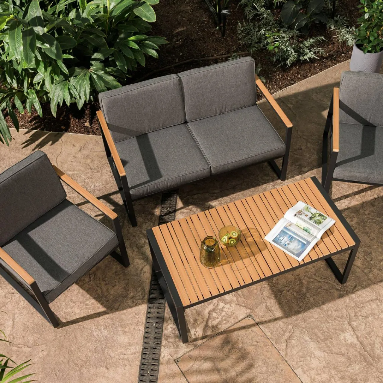 - Komplet będzie świetnym rozwiązaniem do szerokiego balkonu, na taras lub do ogrodu w industrialnym stylu.