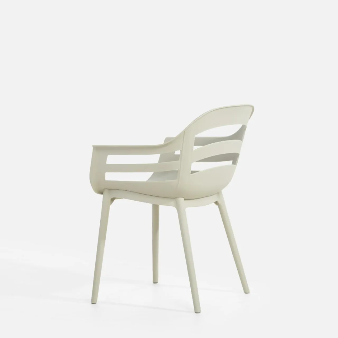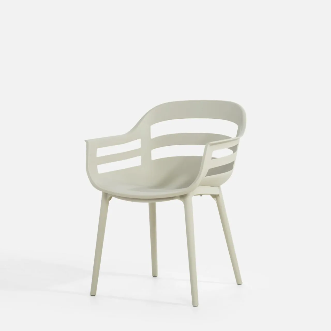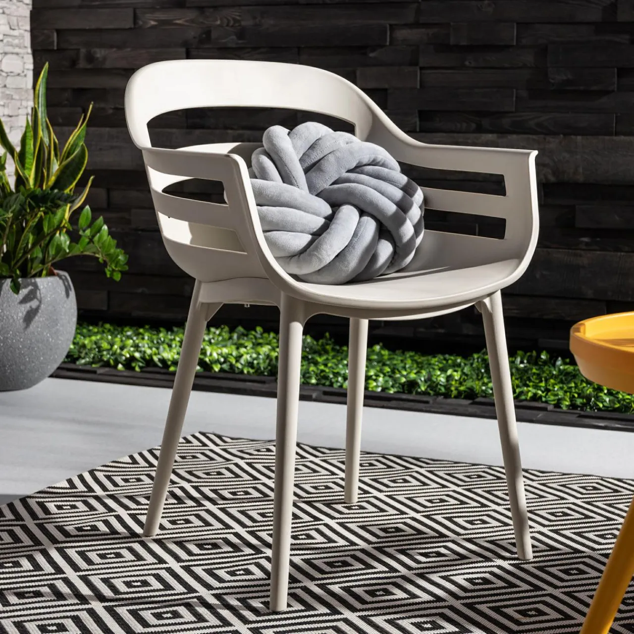 - Przyjazny dla oka design — krzesło prezentuje się lekko dzięki budowie z przepustkami. Postaw je w mniejszym ogrodzie lub na balkonie, nie zaburzy wyglądu letniego ogródka.