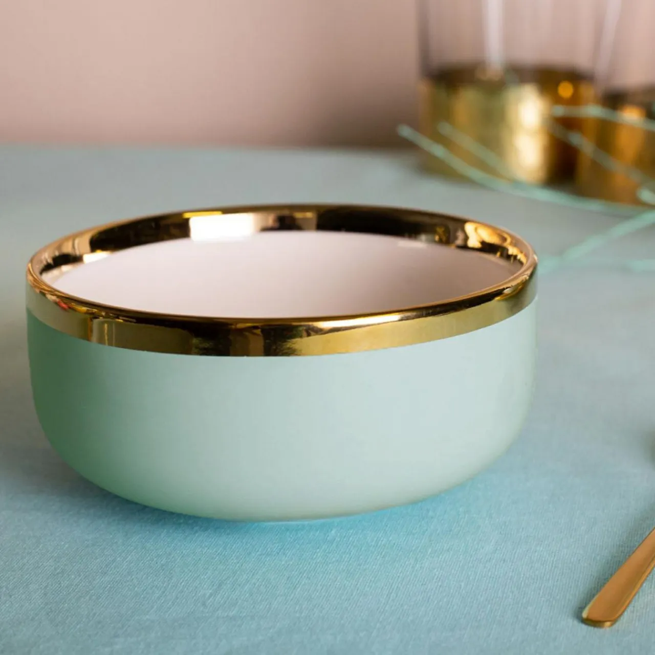 Miski, Patery I Półmiski| Miska porcelanowa jasna zieleń AURORA GOLD 500 ml
