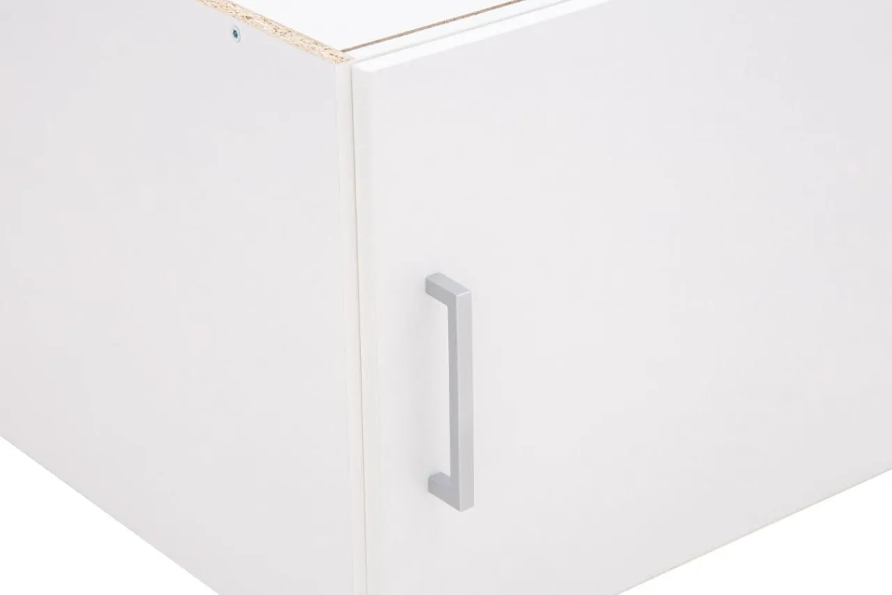 Szafka zamykana jest na 1 białe drzwi. Podłużny, klasyczny uchwyt ułatwia dostanie się do wnętrza.