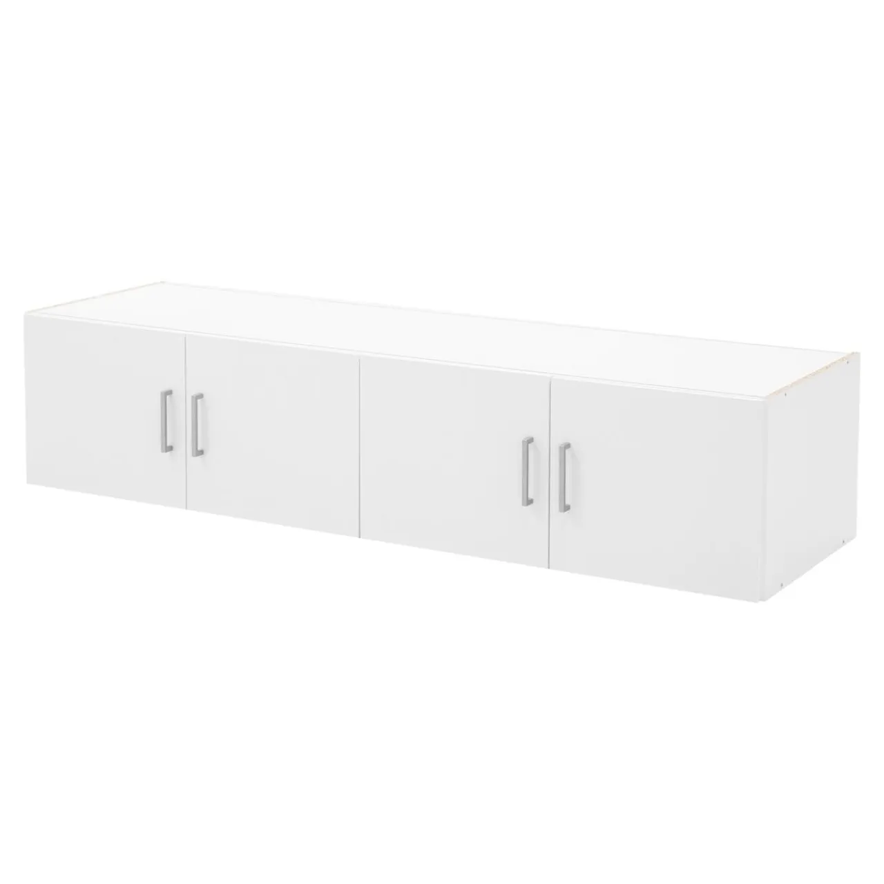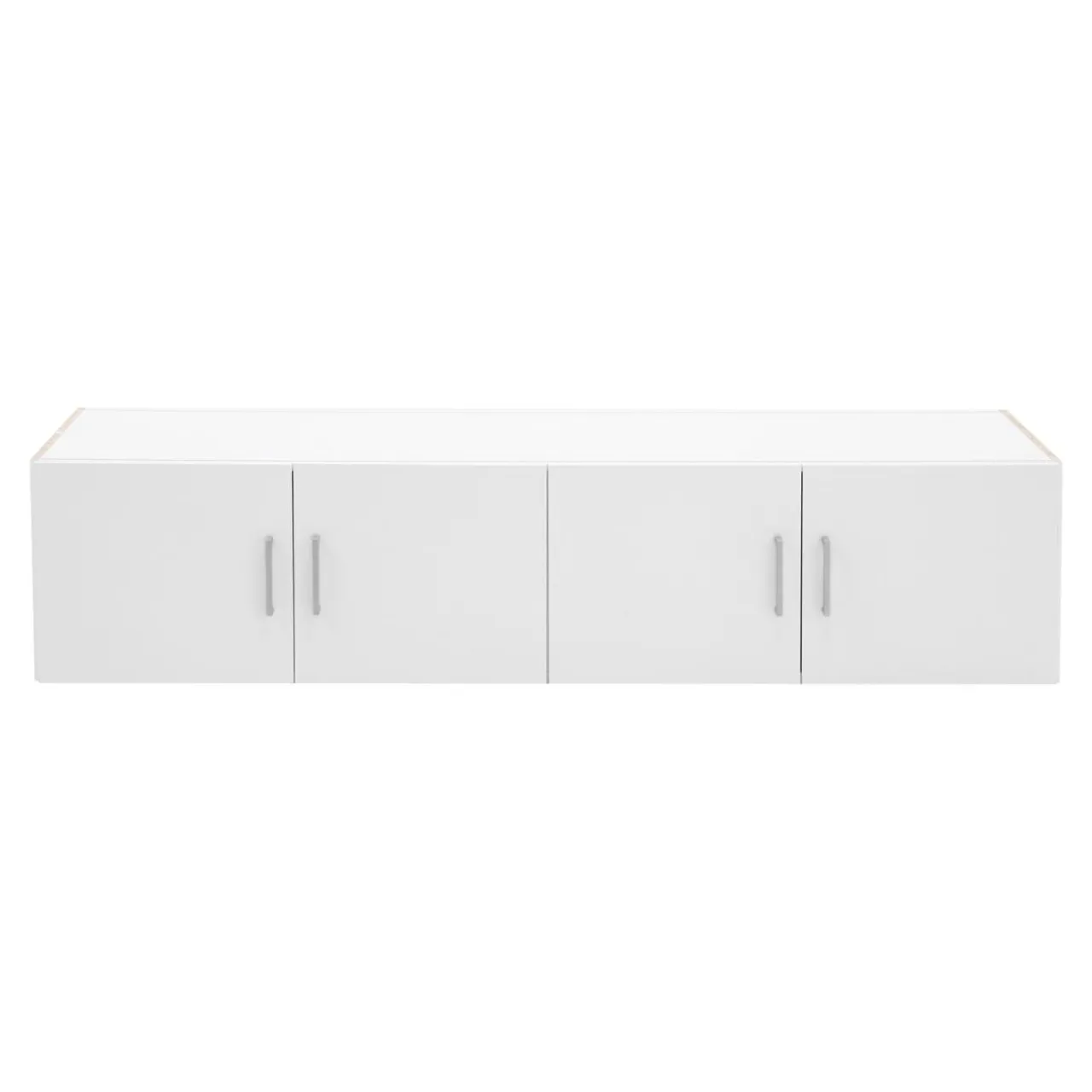 Szafka zamykana jest na 4 białe drzwi. Podłużne uchwyty w tym samym kolorze ułatwią dostanie się do wnętrza.