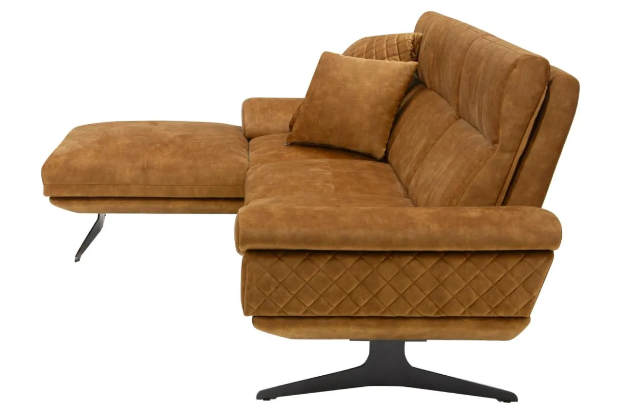 - Narożnik w miodowym kolorze dobrze zaprezentuje się w eleganckim, nowoczesnym salonie. Zestaw go ze szklanymi, kryształowymi lub złotymi dodatkami, a uzyskasz efekt luksusu.