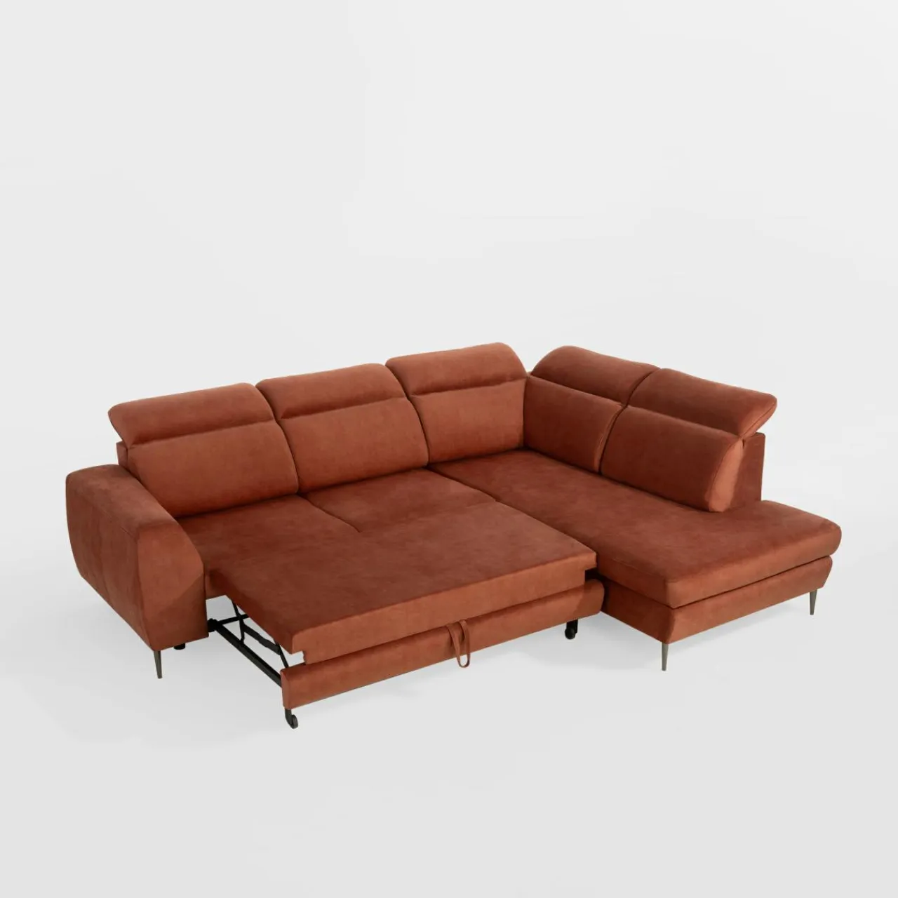 - Narożnik został wyposażony w prosty system rozkładania typu delfin.