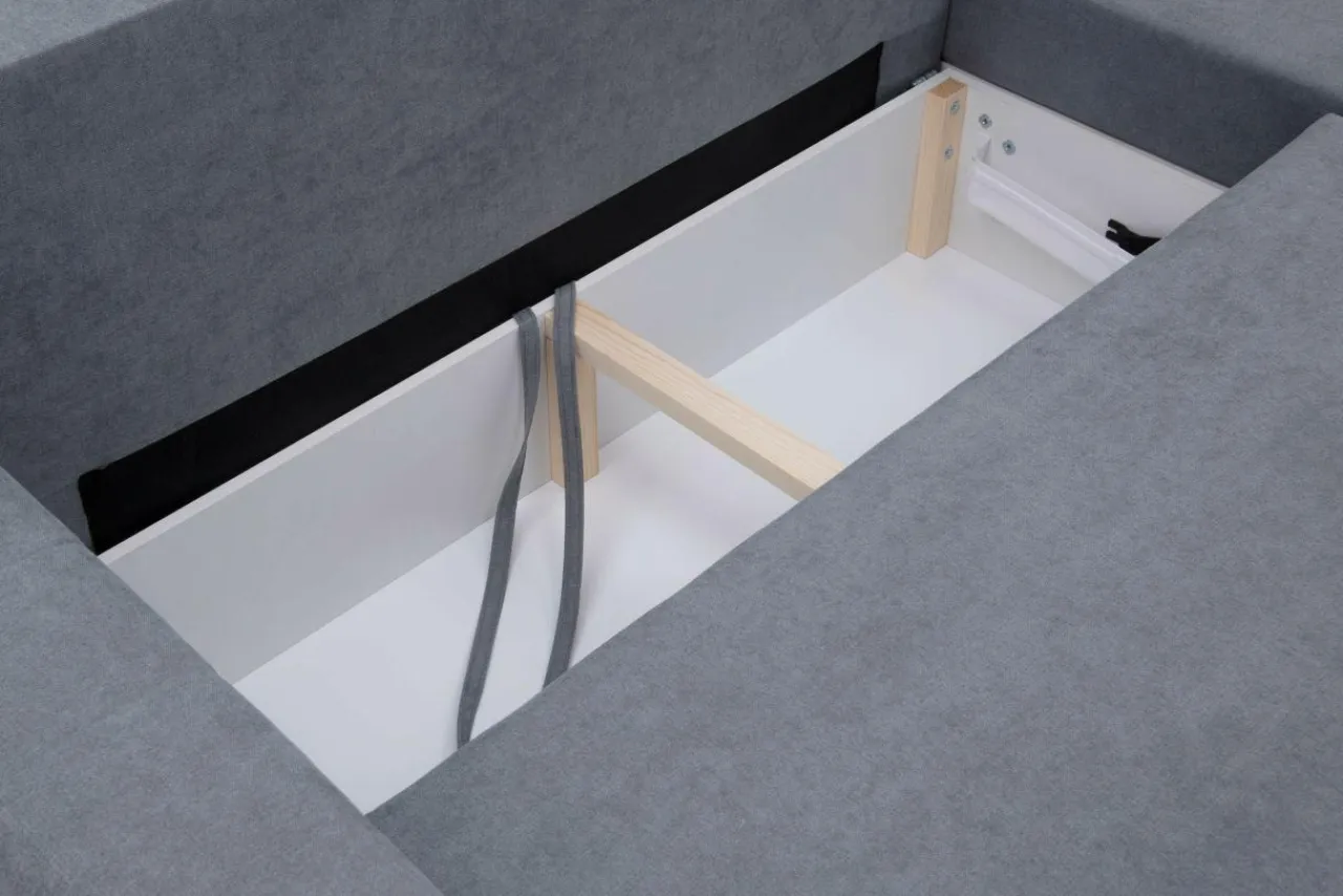 - Pościel możesz trzymać w drugim pojemniku pod siedziskiem – skorzystasz z niego w trakcie rozkładania łóżka.
