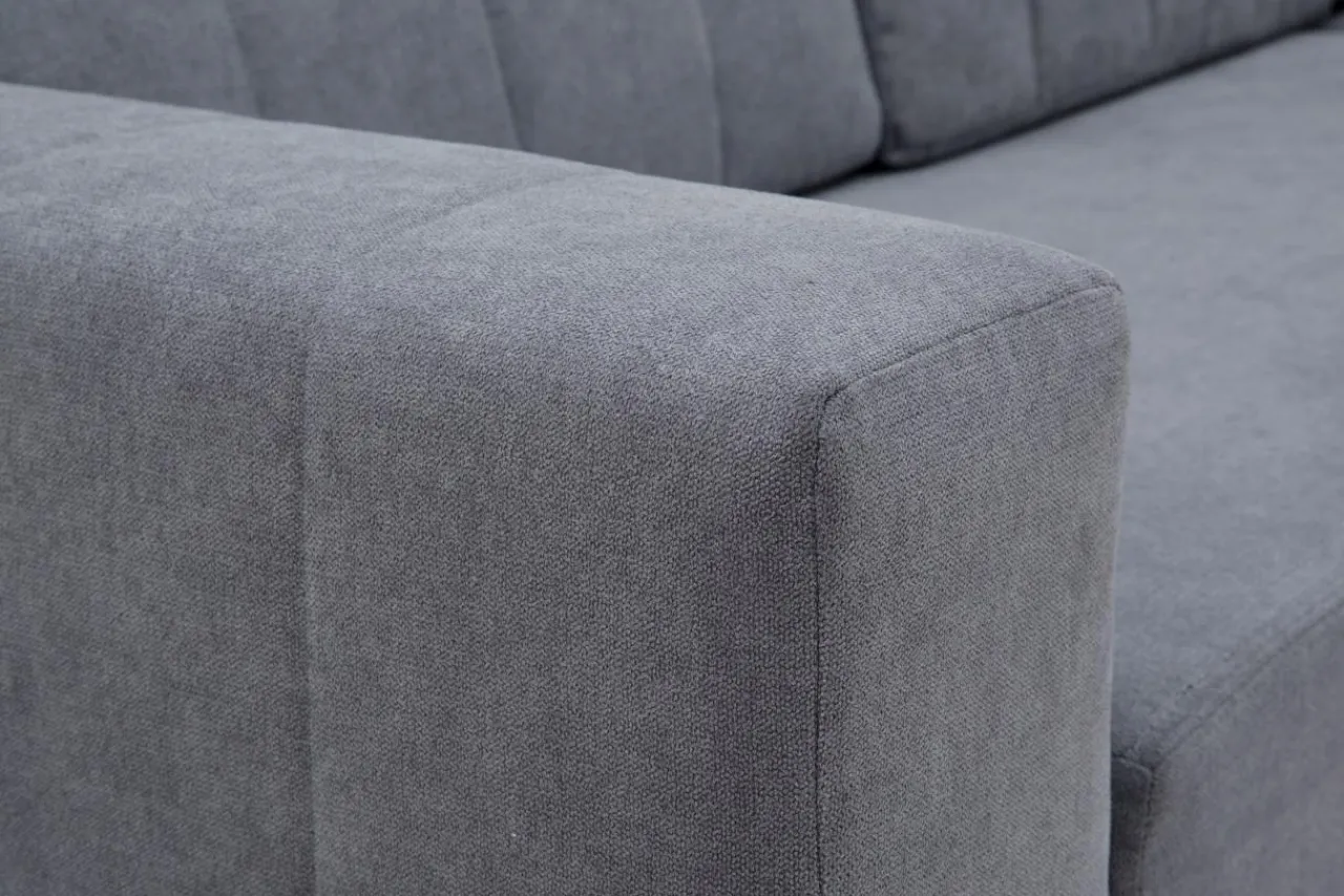 - Tapicerka z delikatną strukturą – wyczuwalną pod palcami – nadaje eleganckiego wykończenia narożnikowi.
