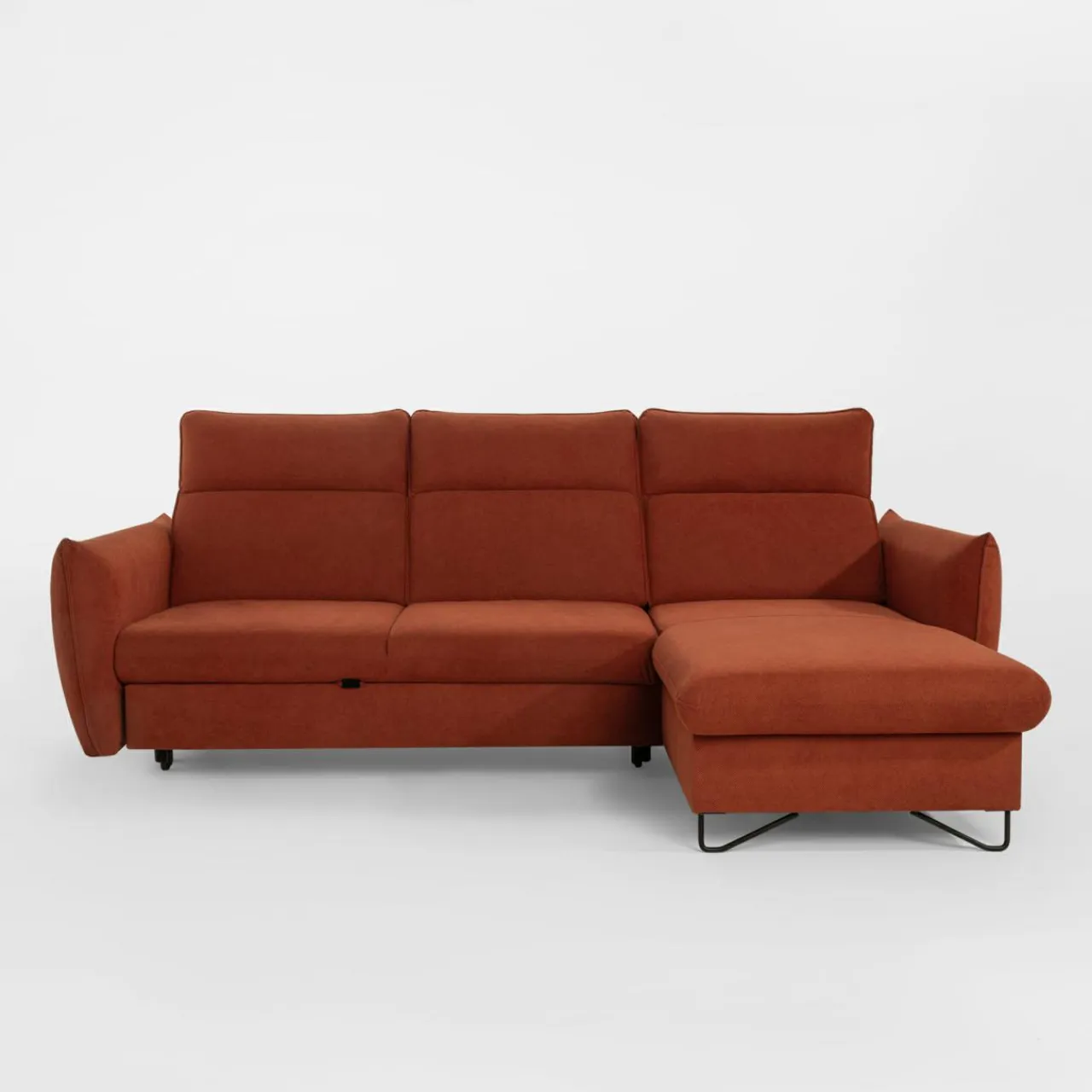 Stelaż pod siedziskiem wysuwamy i podnosimy za pomocą uchwytu. Mebel nie wymaga odsuwania od ściany. Idealny do okazjonalnego spania.