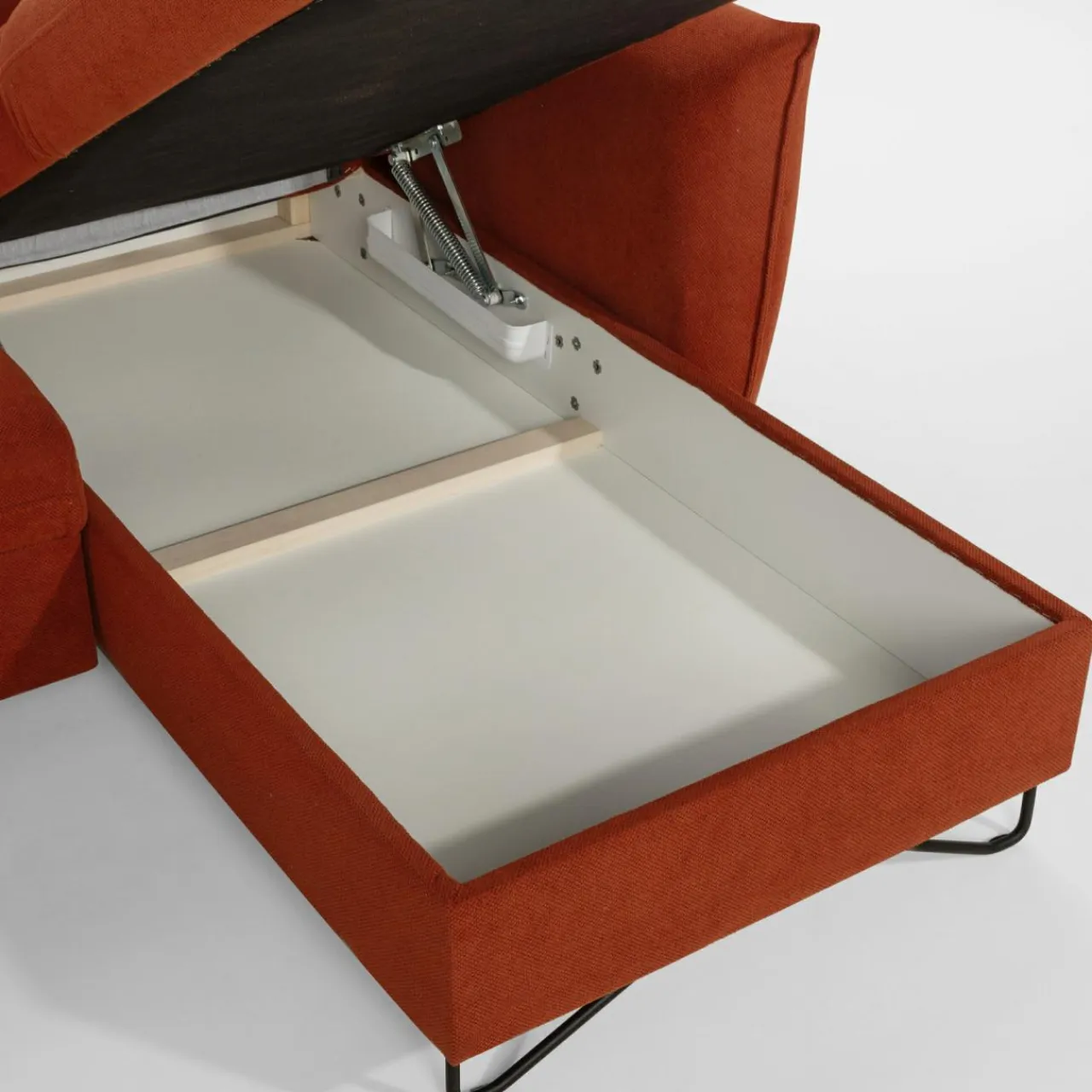 - Pojemnik w leżance będzie wygodnym miejscem do przechowywania kompletu pościeli. Będziesz mieć do niego dostęp, nawet po rozłożeniu narożnika.