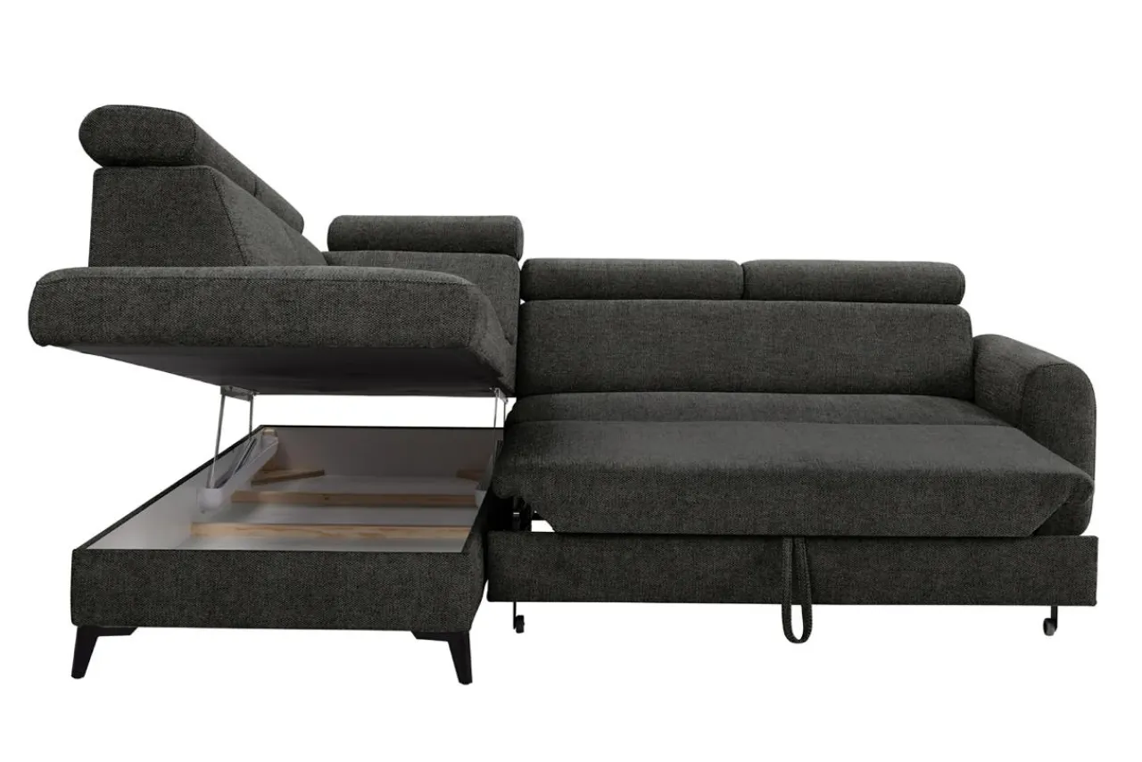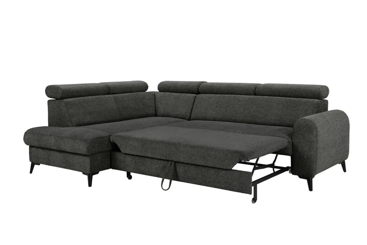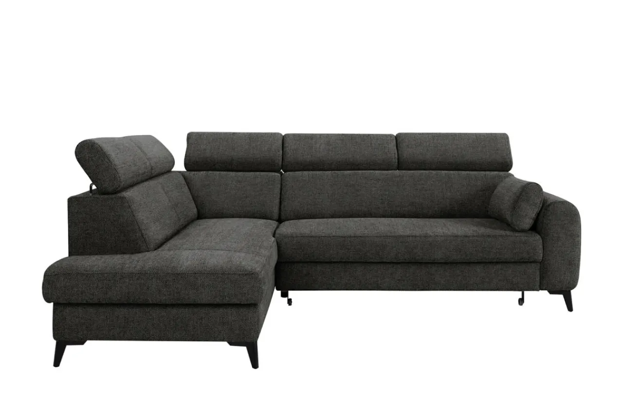 Narożnik rozkładany z regulowanymi zagłówkami ciemnoszary TRENTO lewy