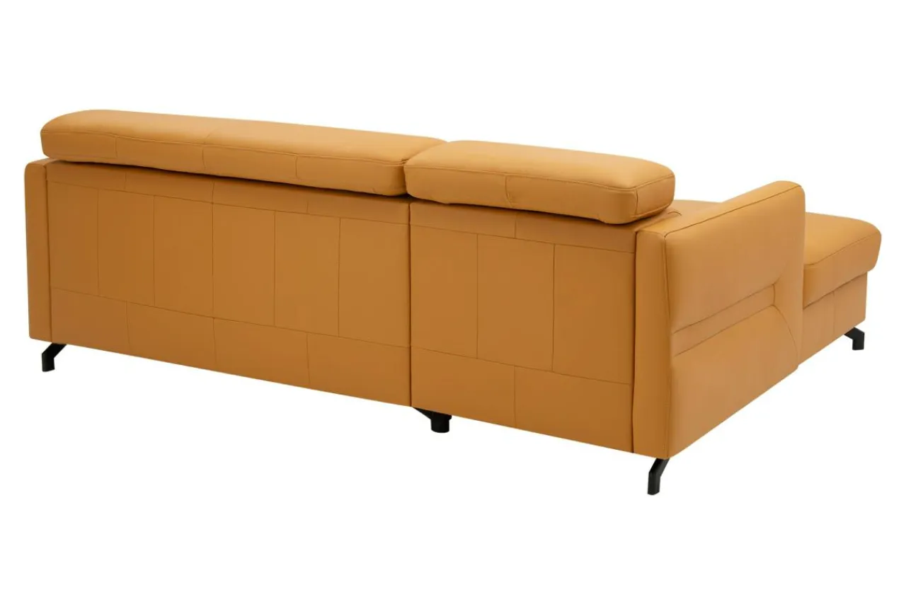 - Narożnik obity jest skórą naturalną w pomarańczowym kolorze.