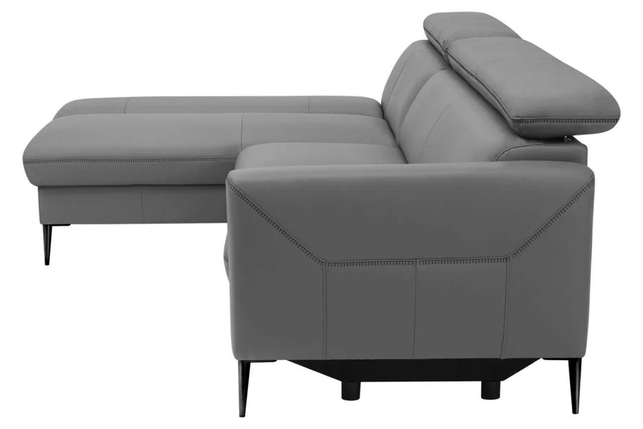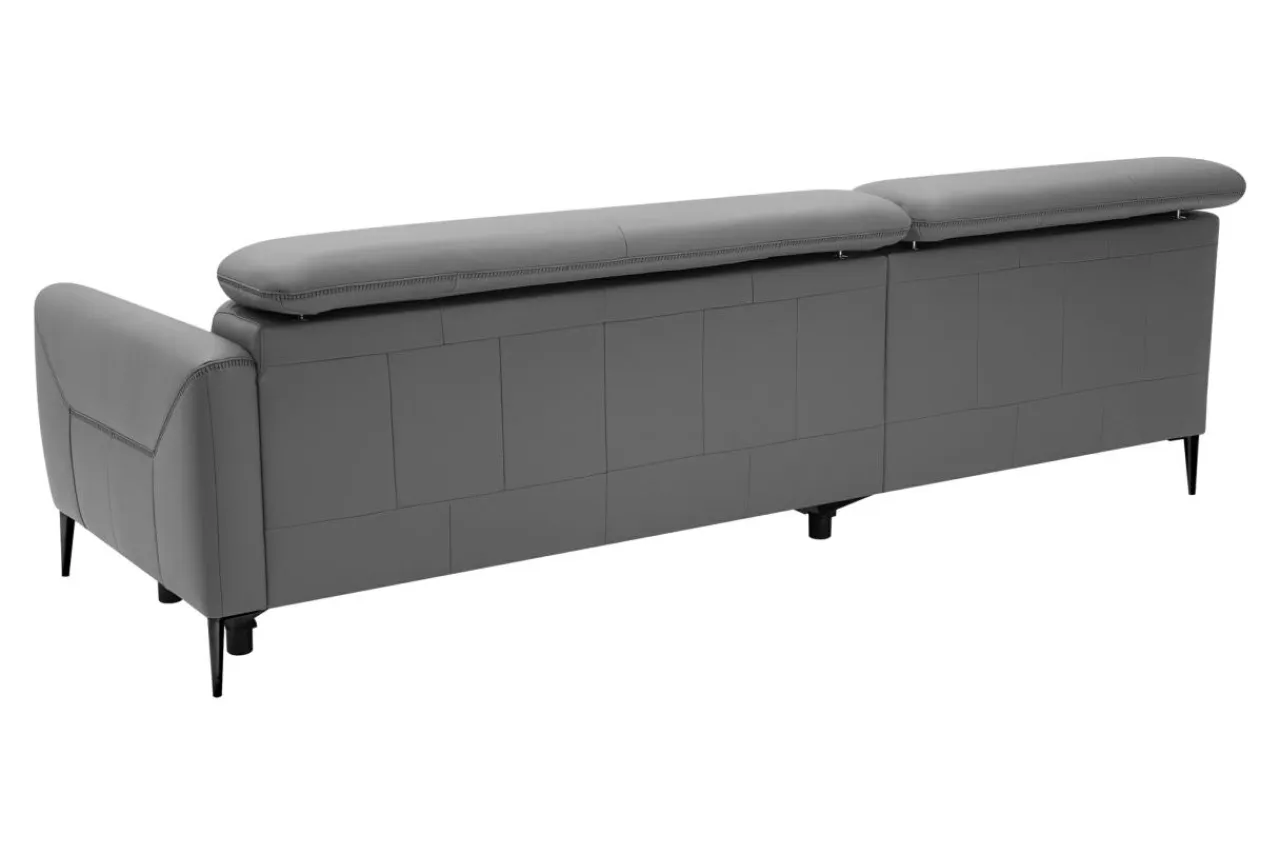 - Narożnik obity jest skórą naturalną w szarym kolorze, który sprawdzi się w nowoczesnych i modernistycznych wnętrzach.