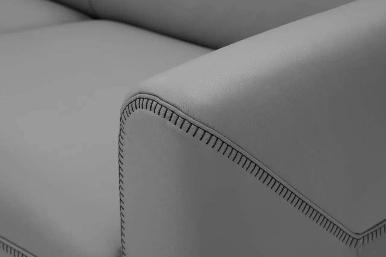- Przeszycia wykonano nicią w czarnym, kontrastowym kolorze, które podkreślają charakter mebla.