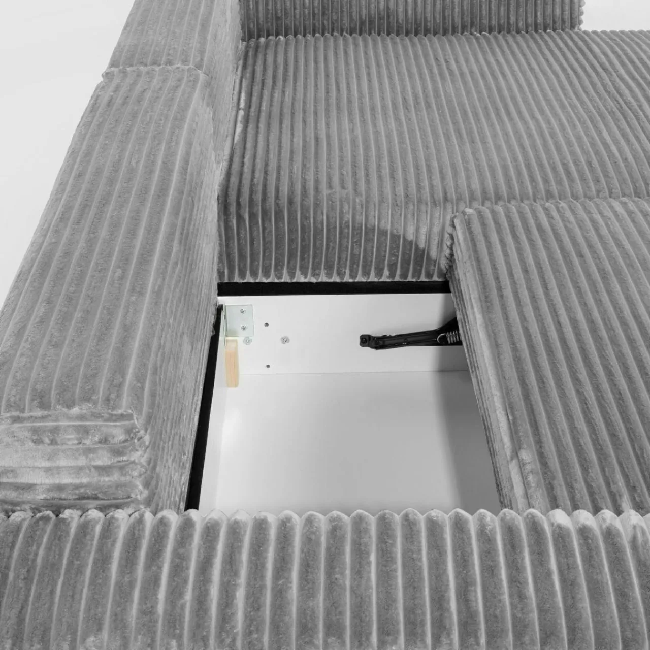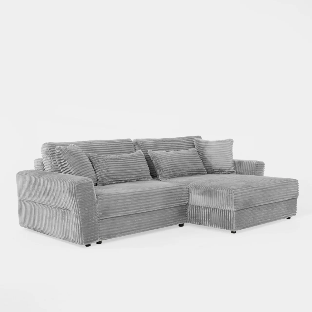 - Narożnik pokryto przyjemnym w dotyku sztruksem – poczujesz przyjemne otulenie podczas picia porannej kawy lub popołudniowej drzemki.