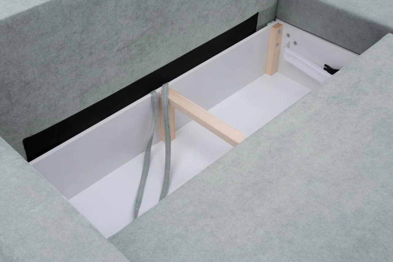 - Pościel możesz trzymać w drugim pojemniku pod siedziskiem – skorzystasz z niego w trakcie rozkładania łóżka.