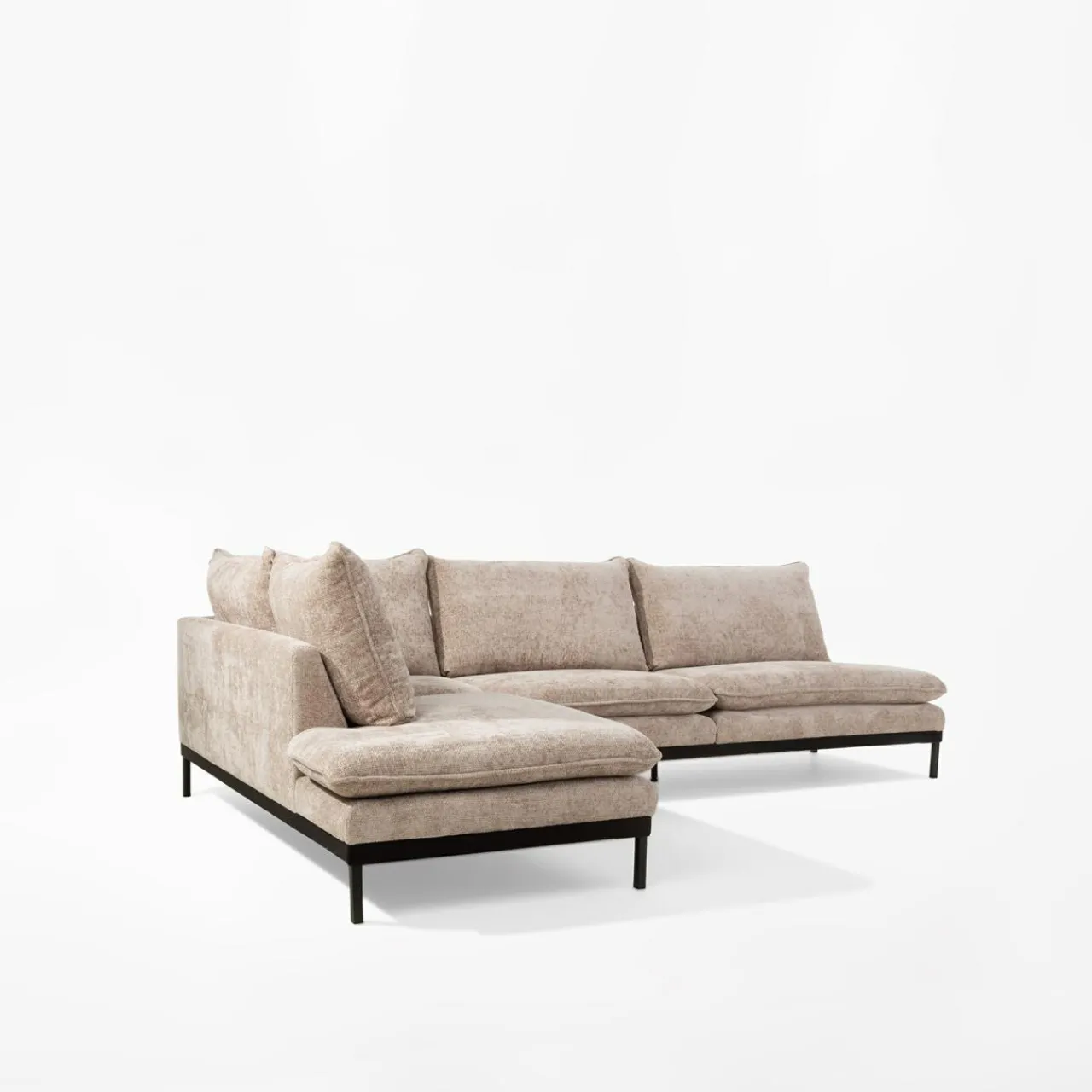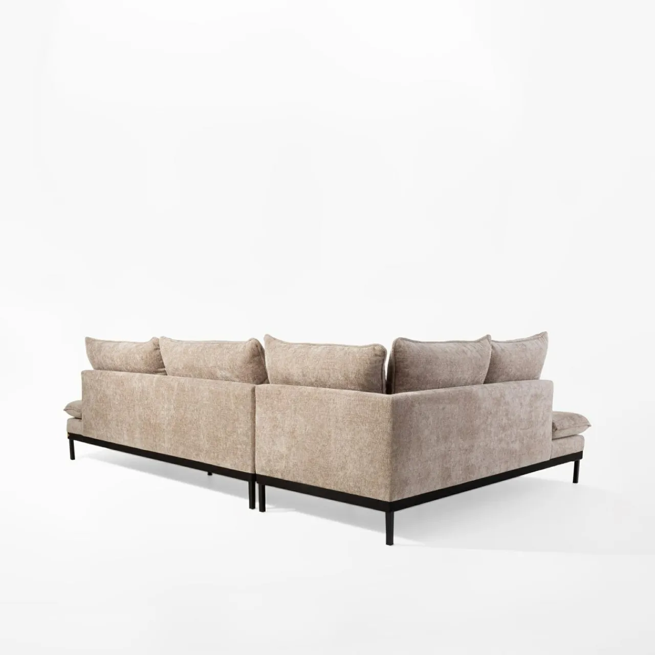 Narożnik LAULER nie posiada podłokietników, dzięki czemu ugościsz na nim więcej gości. Każdy znajdzie wygodną przestrzeń dla siebie – siadając na brzegu, środku lub wyciągając nogi na otomanie.