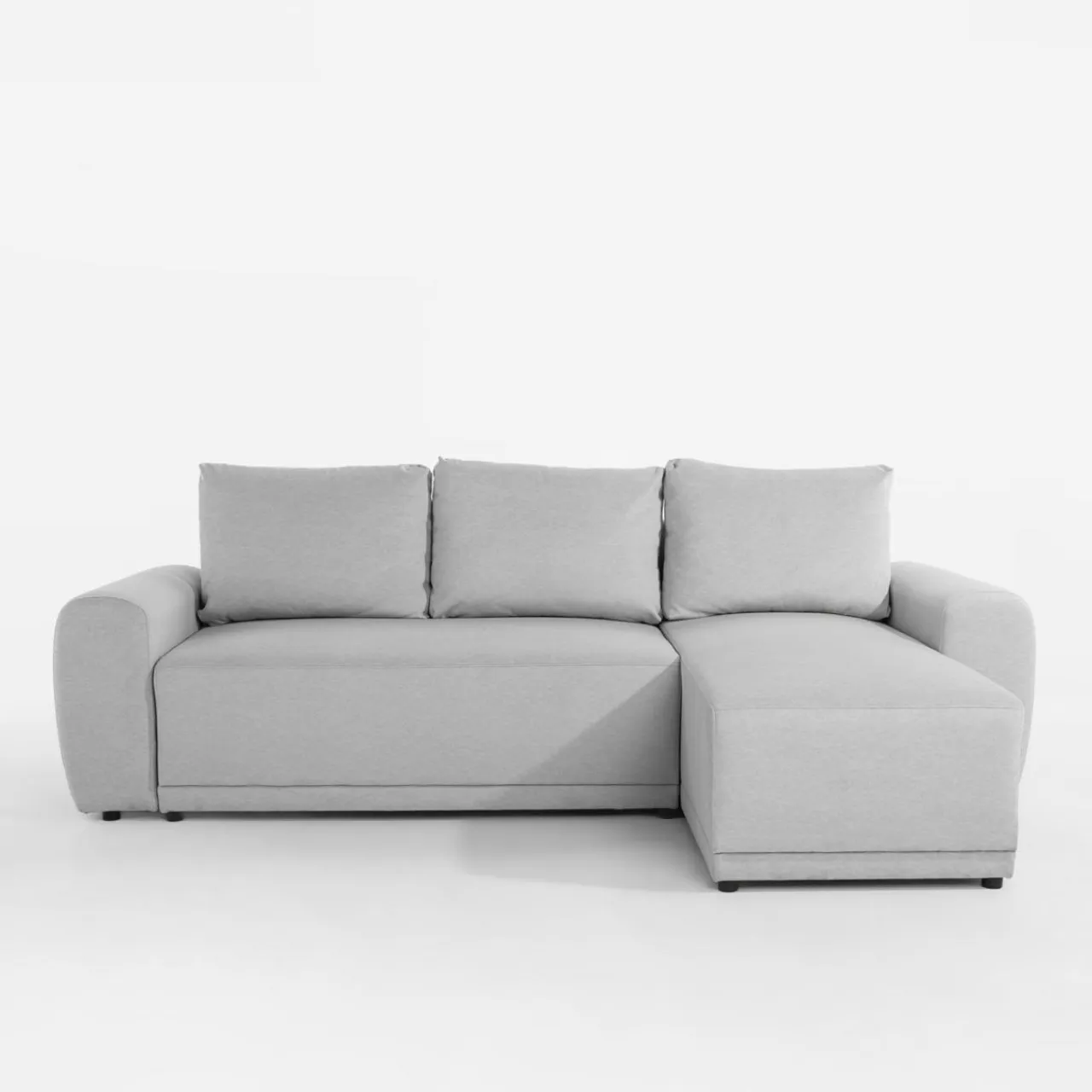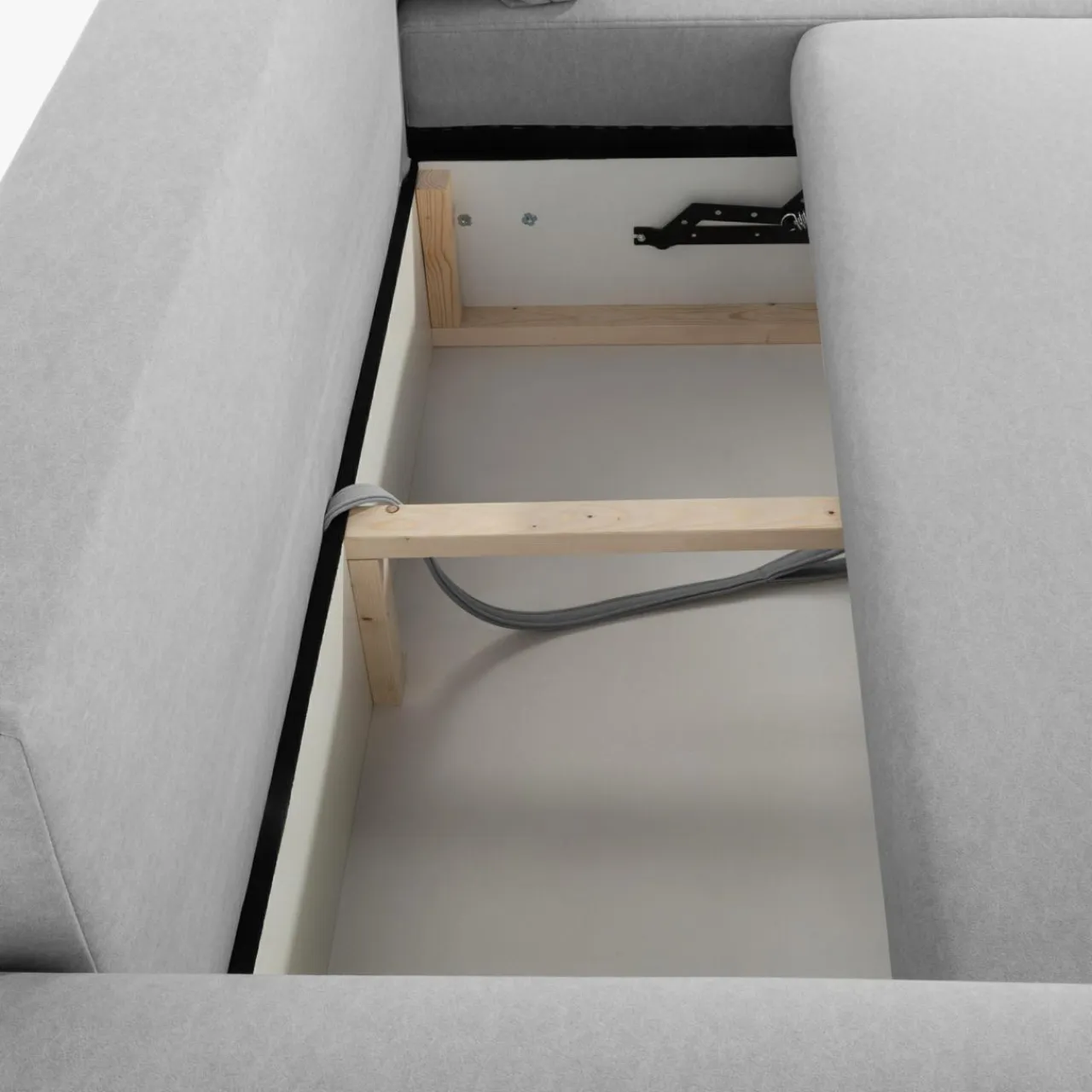 - W pojemniku pod siedziskiem wygodnie przechowasz pościel, koce lub inne domowe tekstylia. Dostęp do niego uzyskasz podczas rozkładania narożnika.