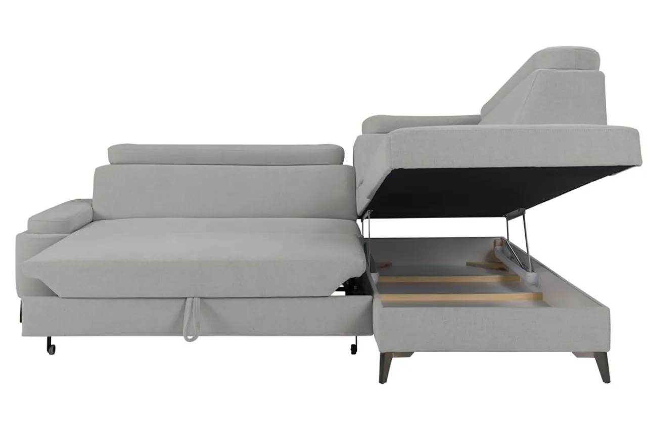 - Wysokie nóżki optycznie podnoszą narożnik, przez co w Twoim salonie będzie wyglądać zgrabnie i lekko.