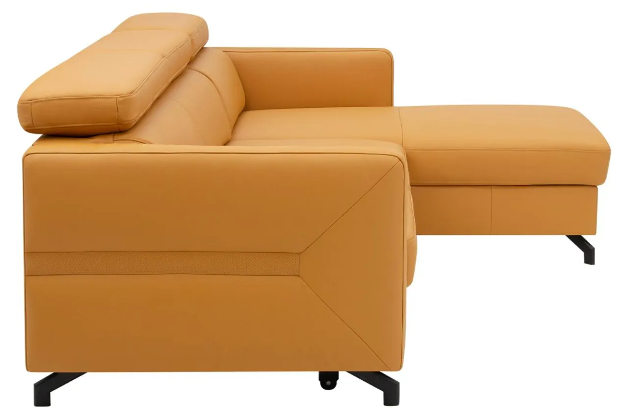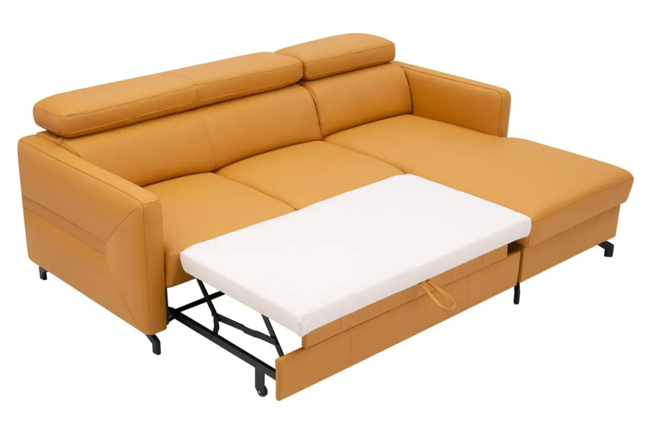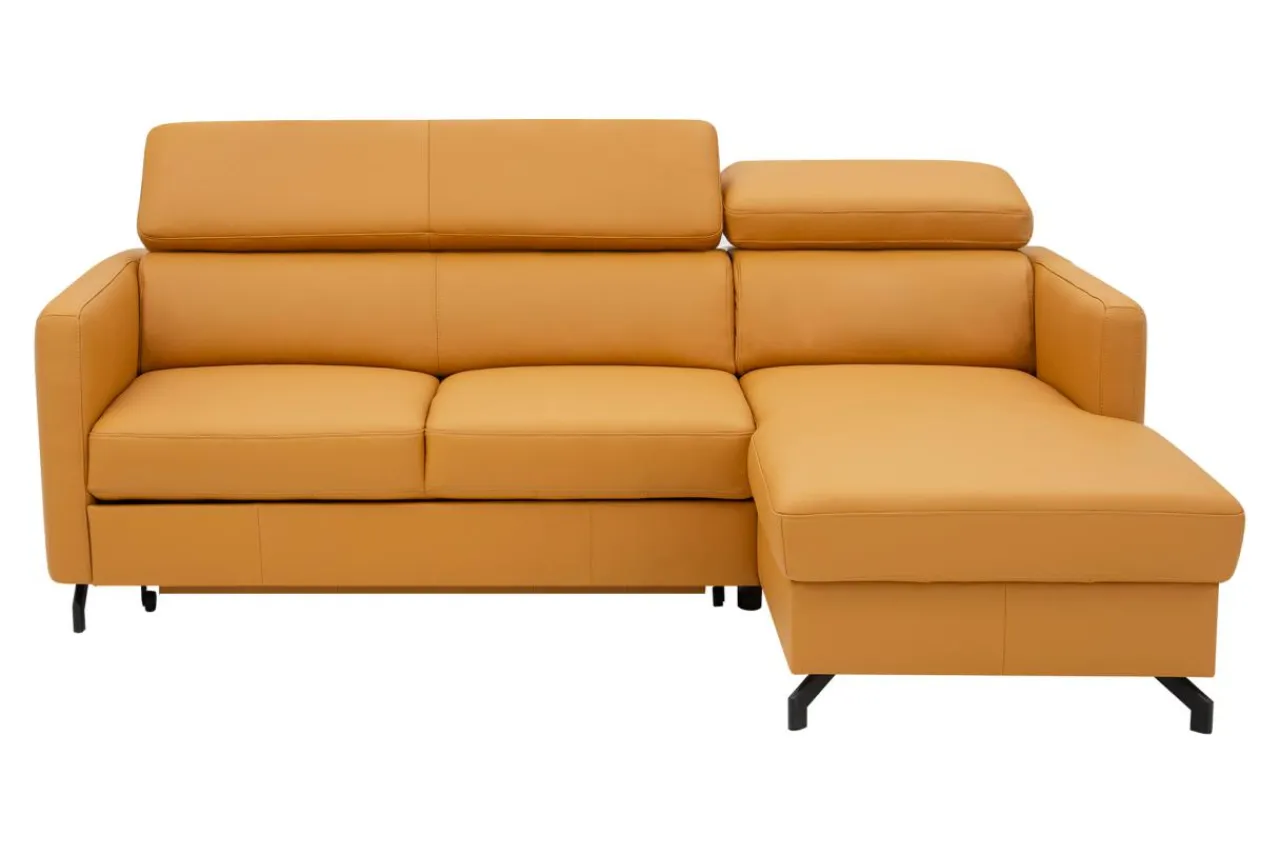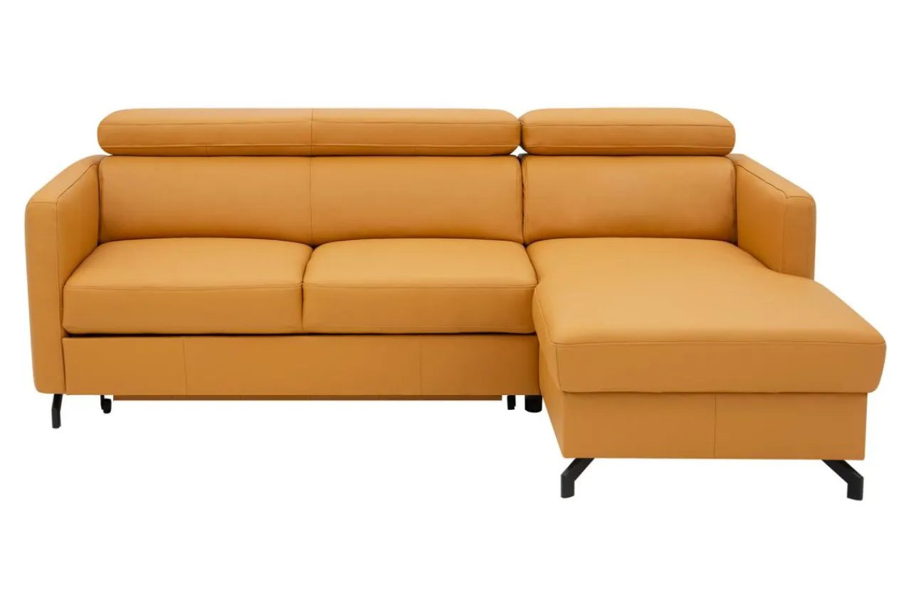- Narożnik obity jest skórą naturalną w pomarańczowym kolorze.