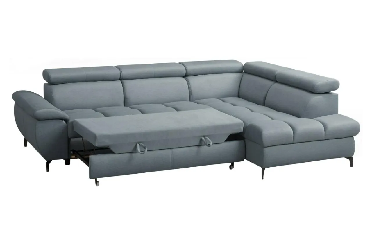 - Narożnik wykonano w szarym kolorze, który sprawdzi się w nowoczesnym, minimalistycznym salonie.