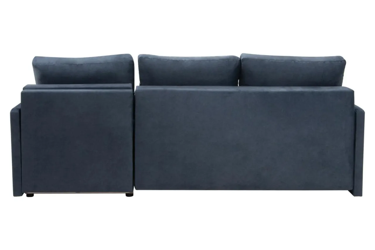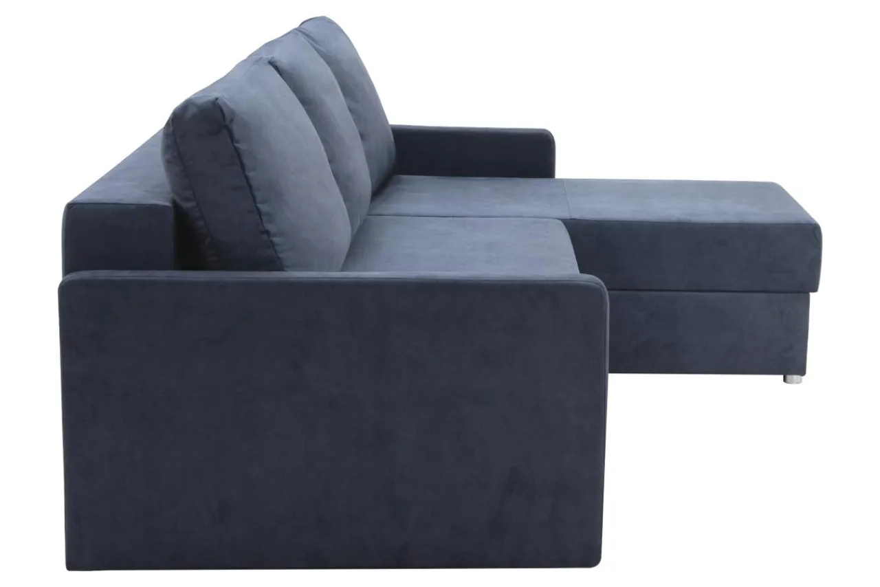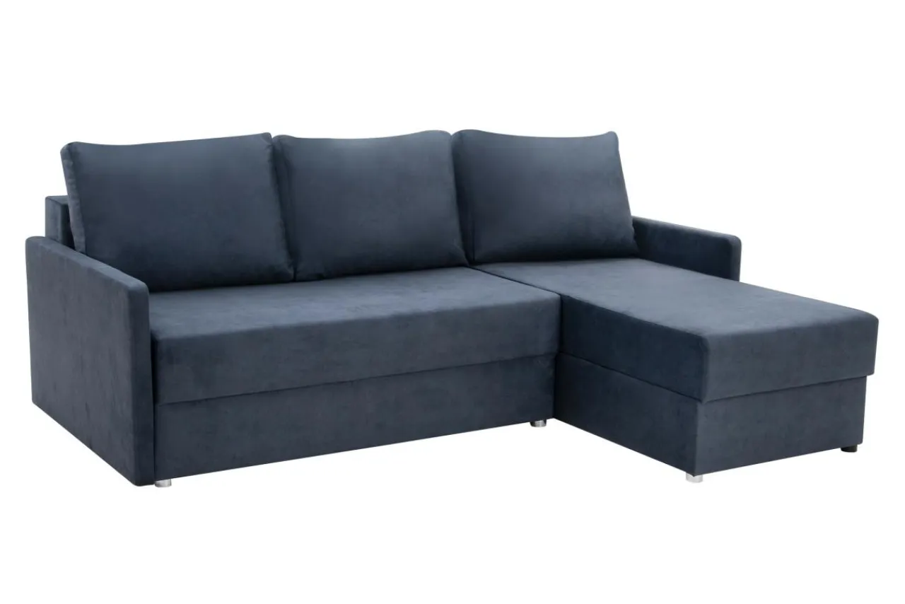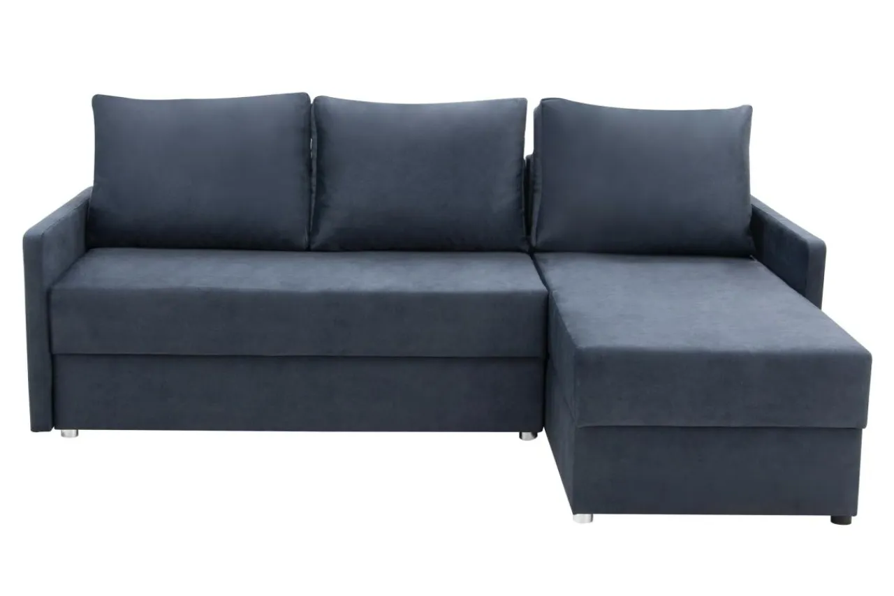 Tkanina ZETTA, którą obity jest narożnik, posiada chmurny, niebieski odcień, a dzięki delikatnemu meszkowi jest bardzo przyjemna w dotyku. Granatowy narożnik możesz połączyć z kontrastowymi kolorami, np. żółtym lub pomarańczowym. Dzięki temu pomieszczenie nabierze wyrazu i energii.