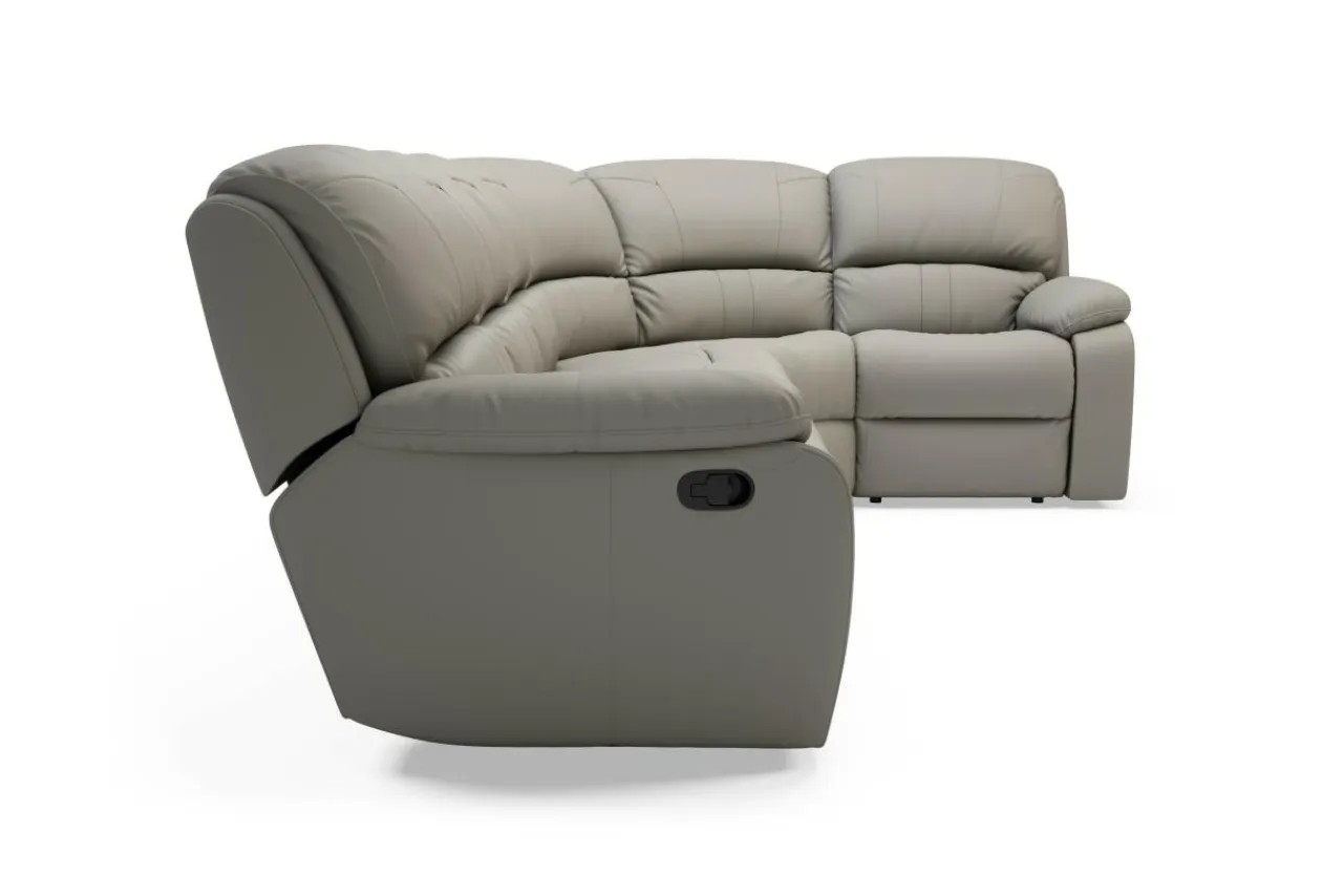 Elementy, które są w największym stopniu narażone na przetarcia, czyli siedzisko i oparcie, zostały pokryte skórą naturalną. Pozostała część mebla obito skórą ekologiczną o identycznym wybarwieniu w odcieniu szarości.