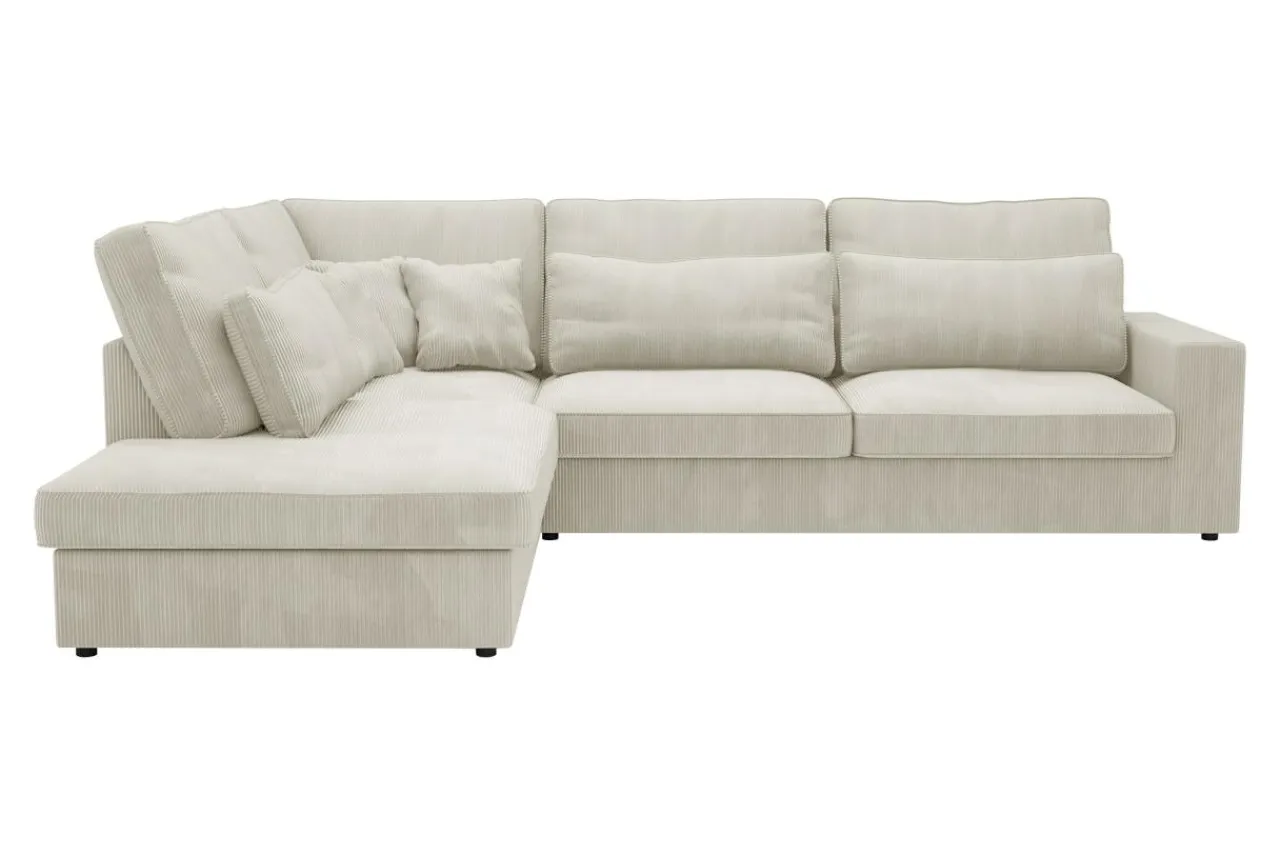 Narożnik COAST jest bogato wyposażony w poduszki – 5 dużych poduch oparciowych, 3 duże lędźwiowe i 3 mniejsze dekoracyjne.