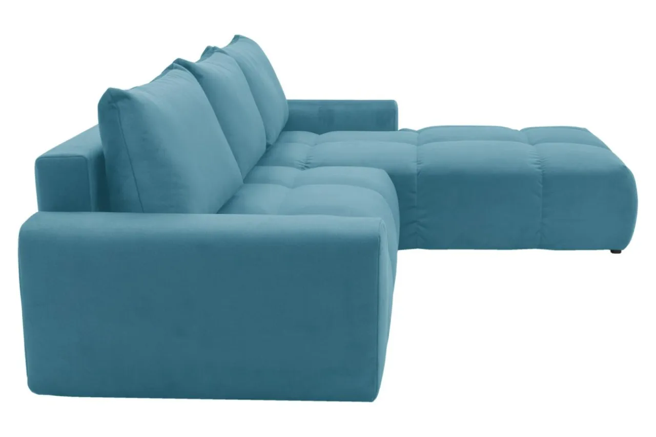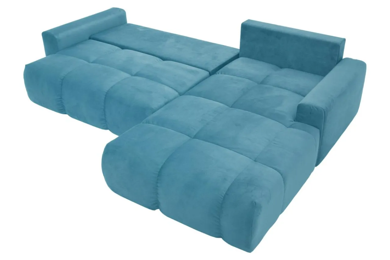 - Welurowa tkanina ELEMENT, którą obito narożnik, jest miękka w dotyku i posiada właściwości water blocked.