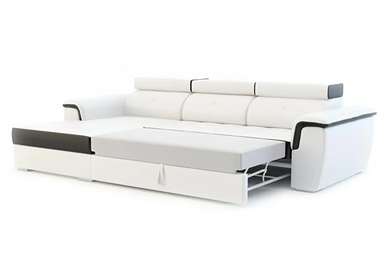 Okazjonalna funkcja spania przyda się, jeśli przyjmujesz gości. Szybki i wygodny mechanizm rozkładania typu delfin nie wymaga skomplikowanych zabiegów. W kilka sekund zamienisz ten komfortowy narożnik w wygodne łóżko.