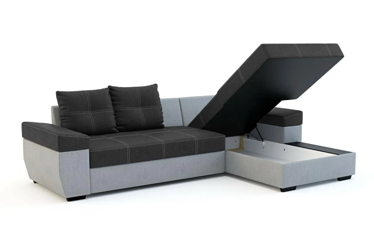 Kołdrę i poduszki można łatwo schować, ponieważ otomana podnosi się wysoko dzięki specjalnemu mechanizmowi.