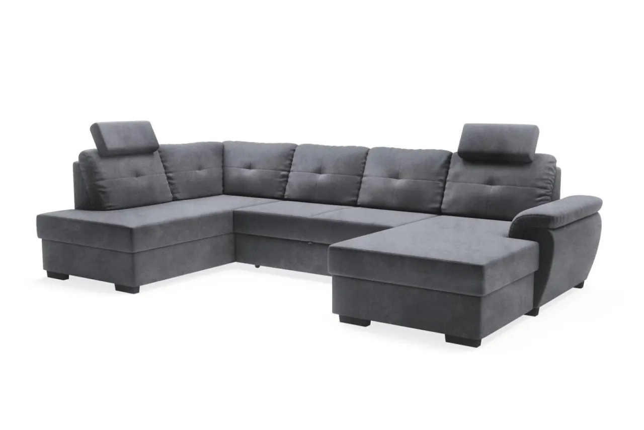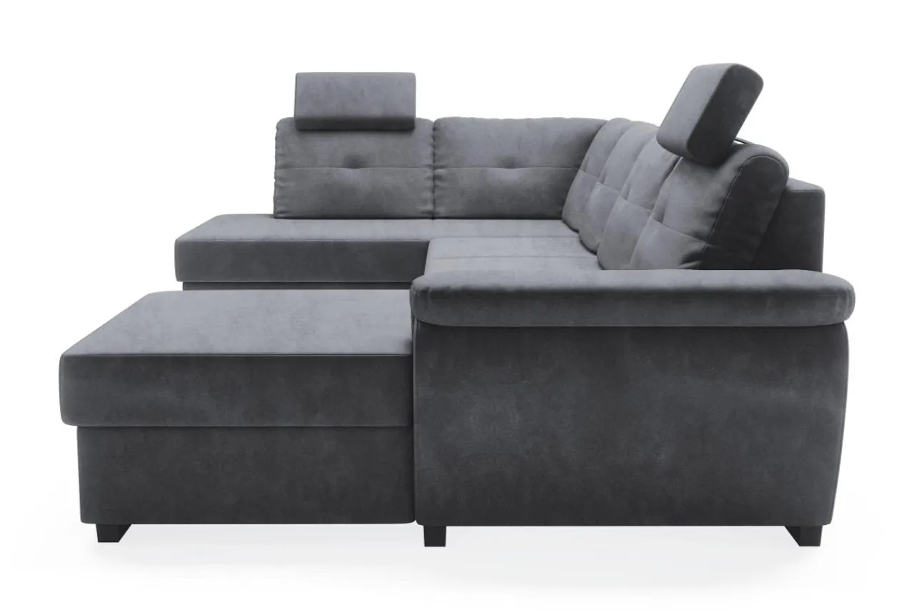 Schowki znajdują się w otomanach narożnika. Po uniesieniu do góry wierzchniej części można szybko i bez zbędnego wysiłku wyciągnąć pościel.