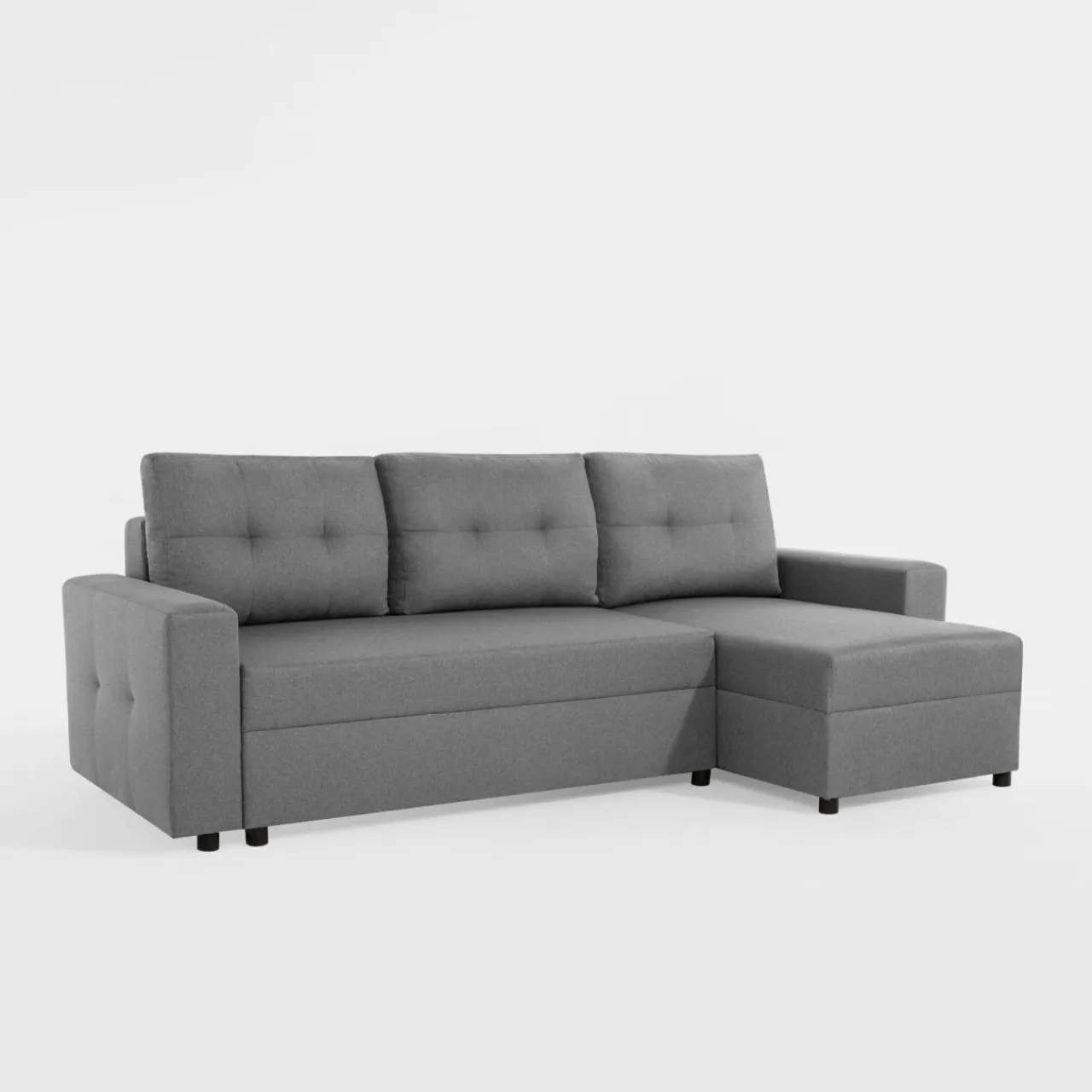 - W narożniku pod siedziskiem znajduje się pojemnik na pościel, który przyda się na przechowanie pościeli i poduszek.