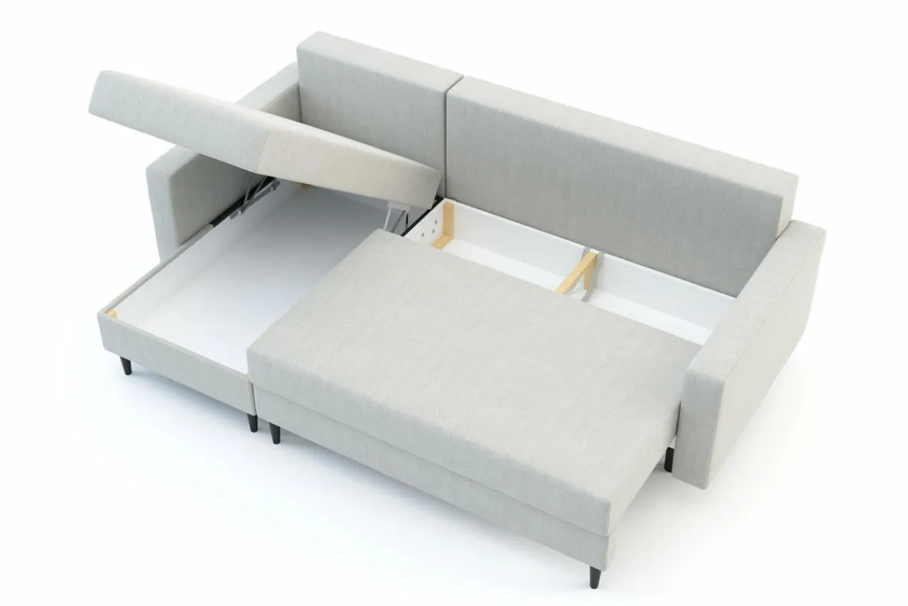 W małym mieszkaniu, każde rozwiązanie oszczędzające przestrzeń jest na wagę złota. Narożnik z 2 pojemnikami to świetna alternatywa.