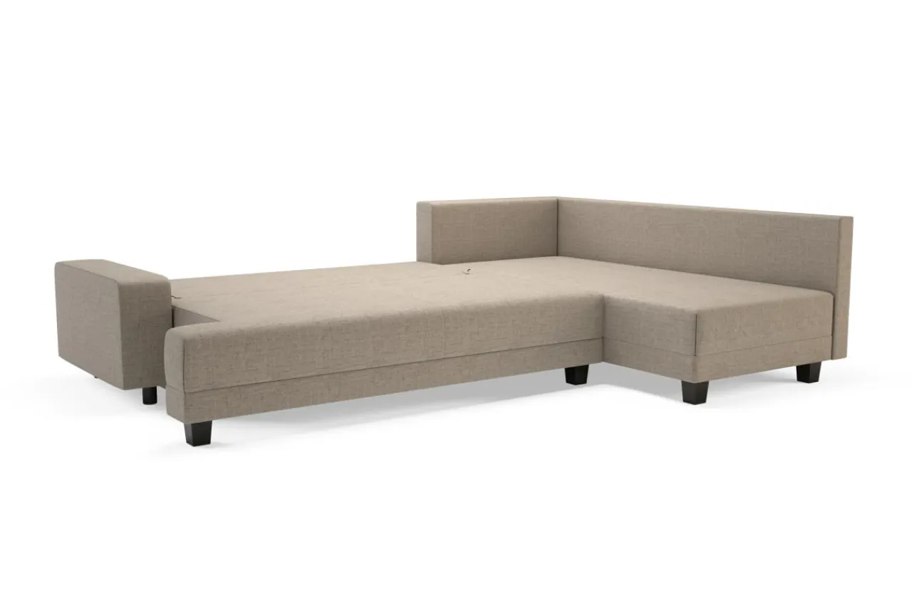 Pojedynczy pojemnik na pościel umieszczony został pod siedziskiem narożnika.