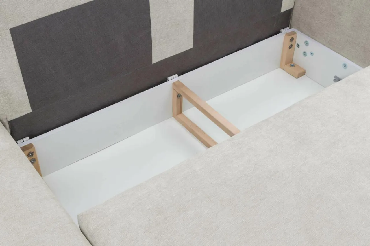 Narożnik jest wyposażony w funkcję z mechanizmem ułatwiającym rozkładanie. Komfort spania jest taki sam po obu stronach dzięki sprężynom falistym.