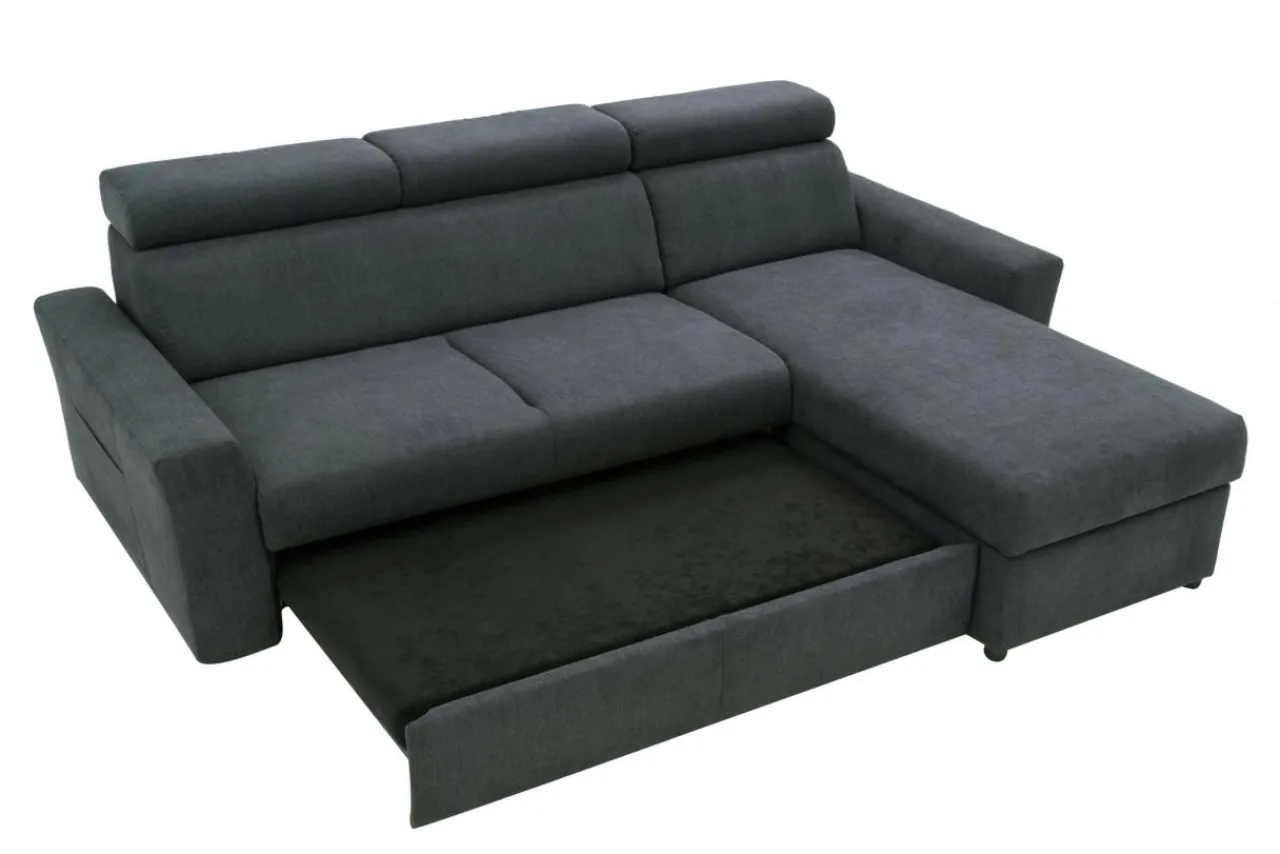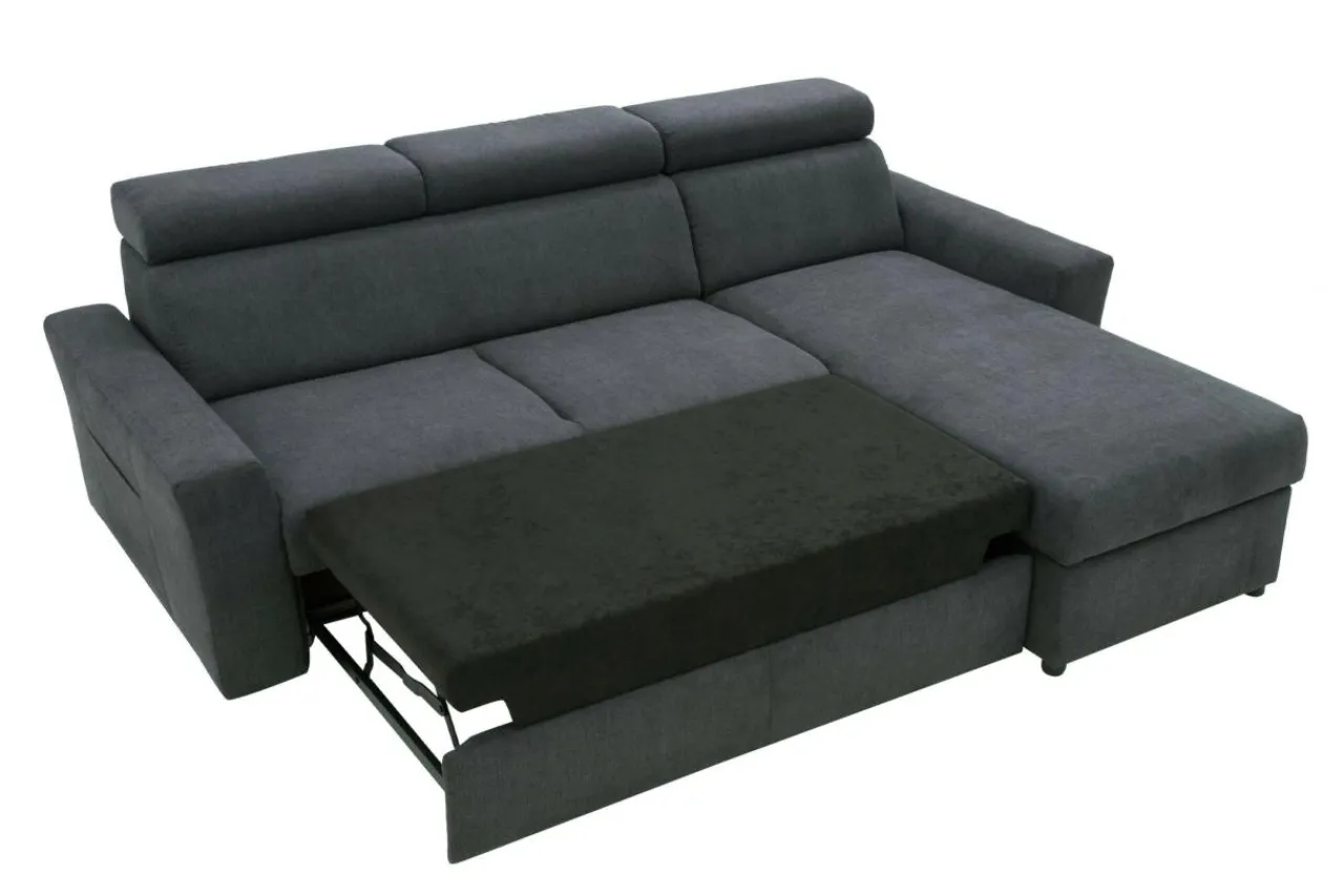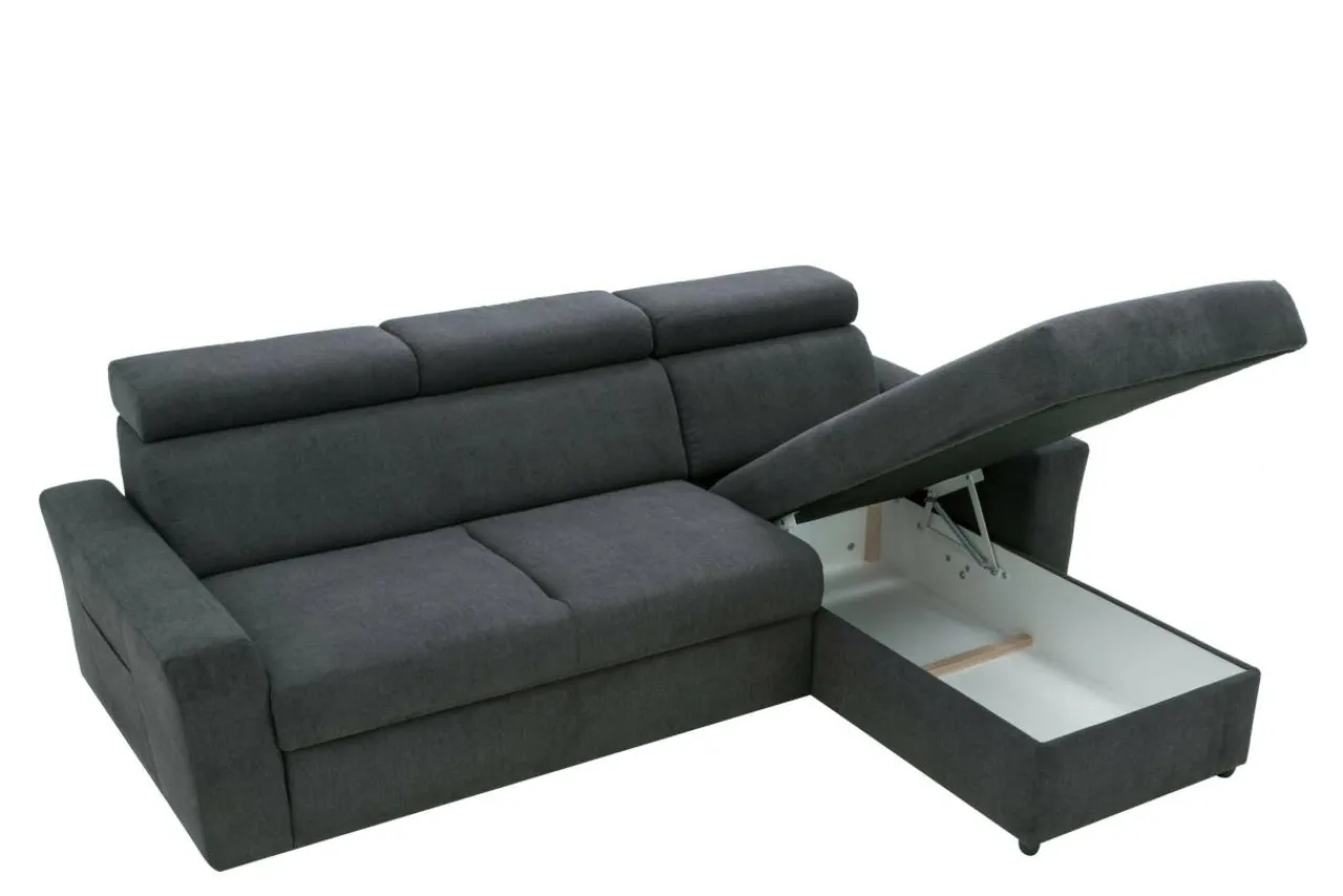 Siedzisko w narożniku wypełniono sprężynami falistymi z dodatkiem pianki osiągając właściwy komfort wypoczynku. Funkcja spania i pojemnik na pościel będą przydatne kiedy zechcemy przenocować naszych gości. Rozkładanie jest bardzo proste i nie wymaga żadnych skomplikowanych zabiegów. Narożnik przeszyto miękką w dotyku tkaniną typu mikrofibra o nazwie ENJOY. Zapewnia ona ograniczone wchłanianie płynów, ułatwia dbanie o czystość.