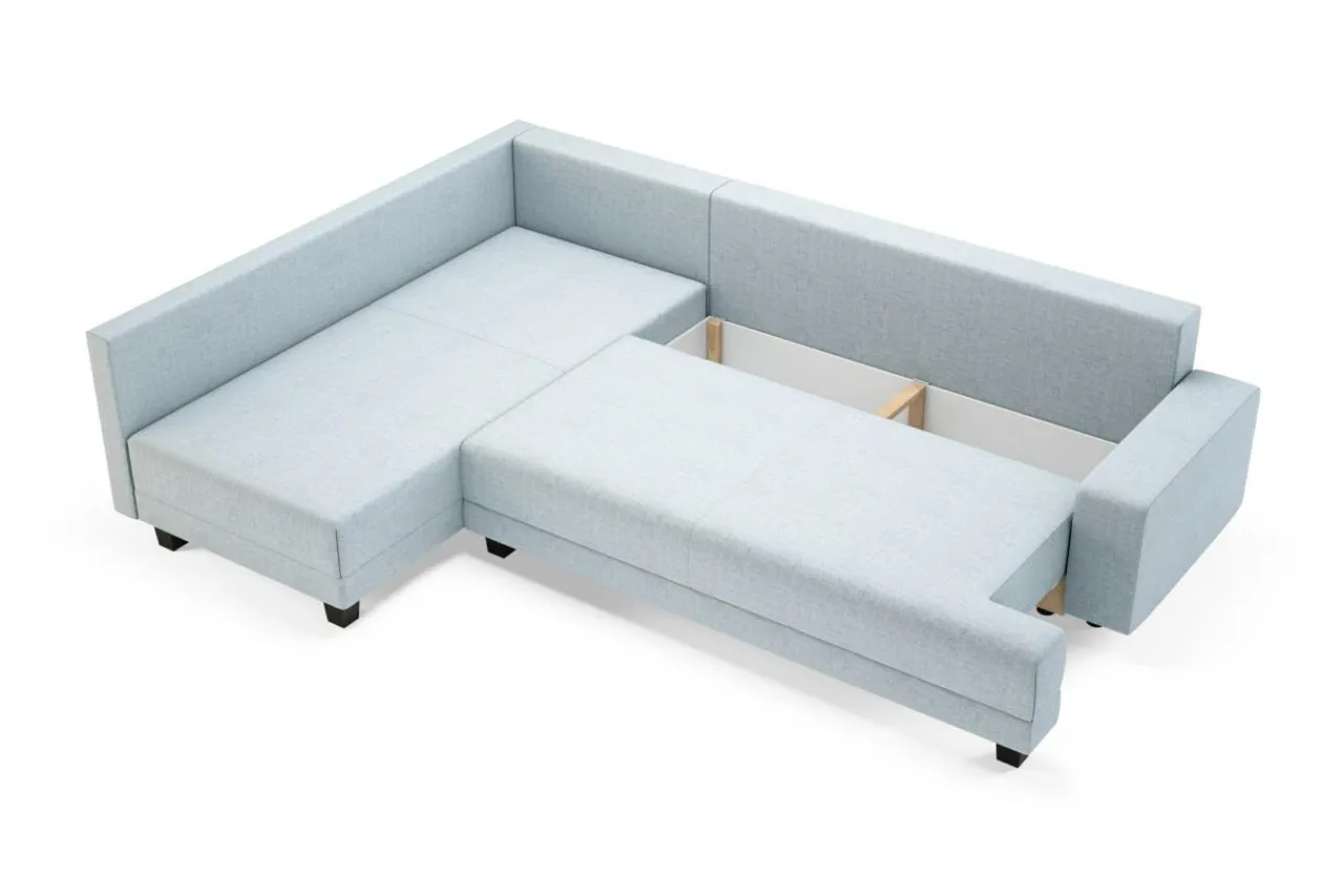 Pojedynczy pojemnik na pościel umieszczony został pod siedziskiem narożnika.