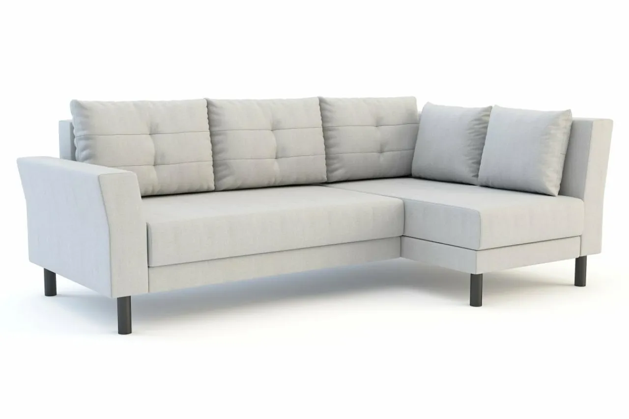 - Zarówno siedzisko, jak i oparcie są wypełnione sprężynami falistymi i pianką. Dzięki temu powierzchnia wypoczynkowa po rozłożeniu narożnika jest tak samo komfortowa.