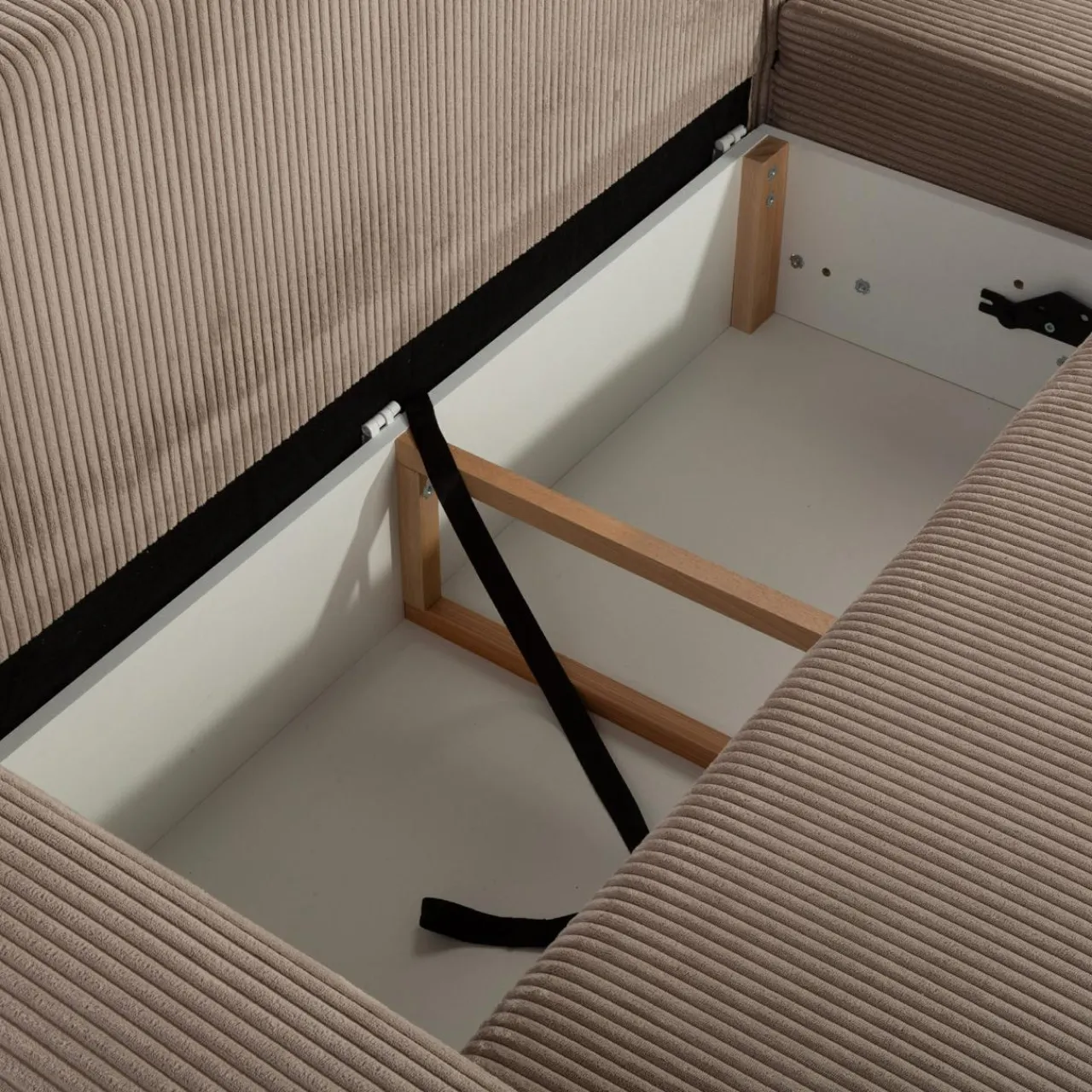 - W pojemniku pod siedziskiem przechowasz pościel lub inne domowe tekstylia.