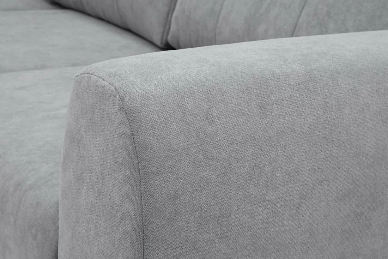 Szara kolorystyka tkaniny sprzyja wyciszeniu. Przyjemna w dotyku tkanina pozwala zatopić się w siedzisku i wypoczywać wygodnie w rodzinnym gronie.