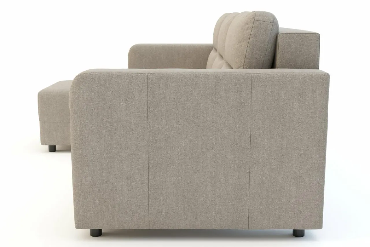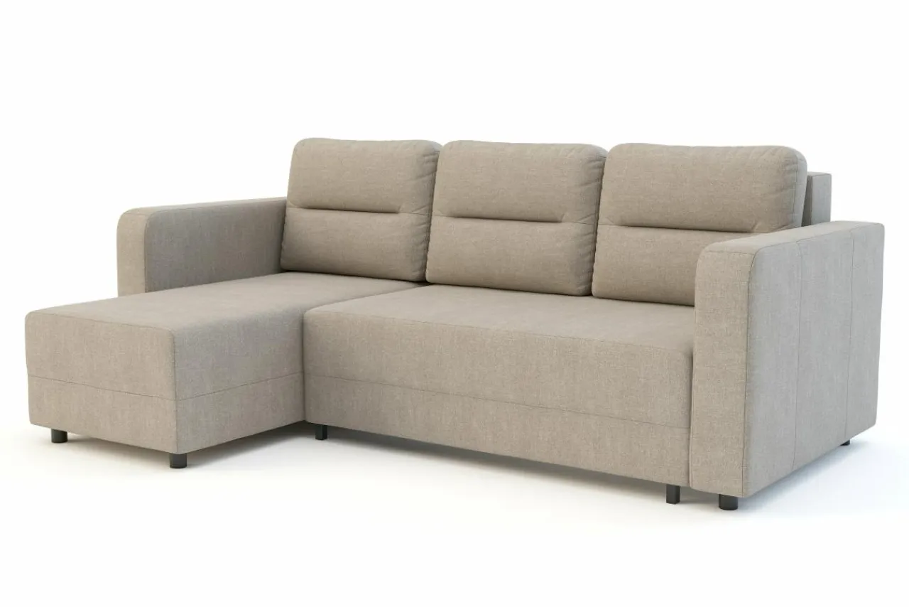 Narożnik w beżowej tapicerce ociepli Twoje wnętrze i będzie doskonałą bazą pod pozostałe meble.