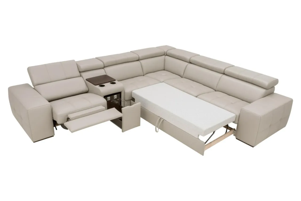 - Moduł z funkcją relaks pozwala na wyciągnięcie podnóżka. Moduł jest rozkładany elektronicznie, co zwiększa nie tylko ergonomię korzystania, ale także luksus mebla;
