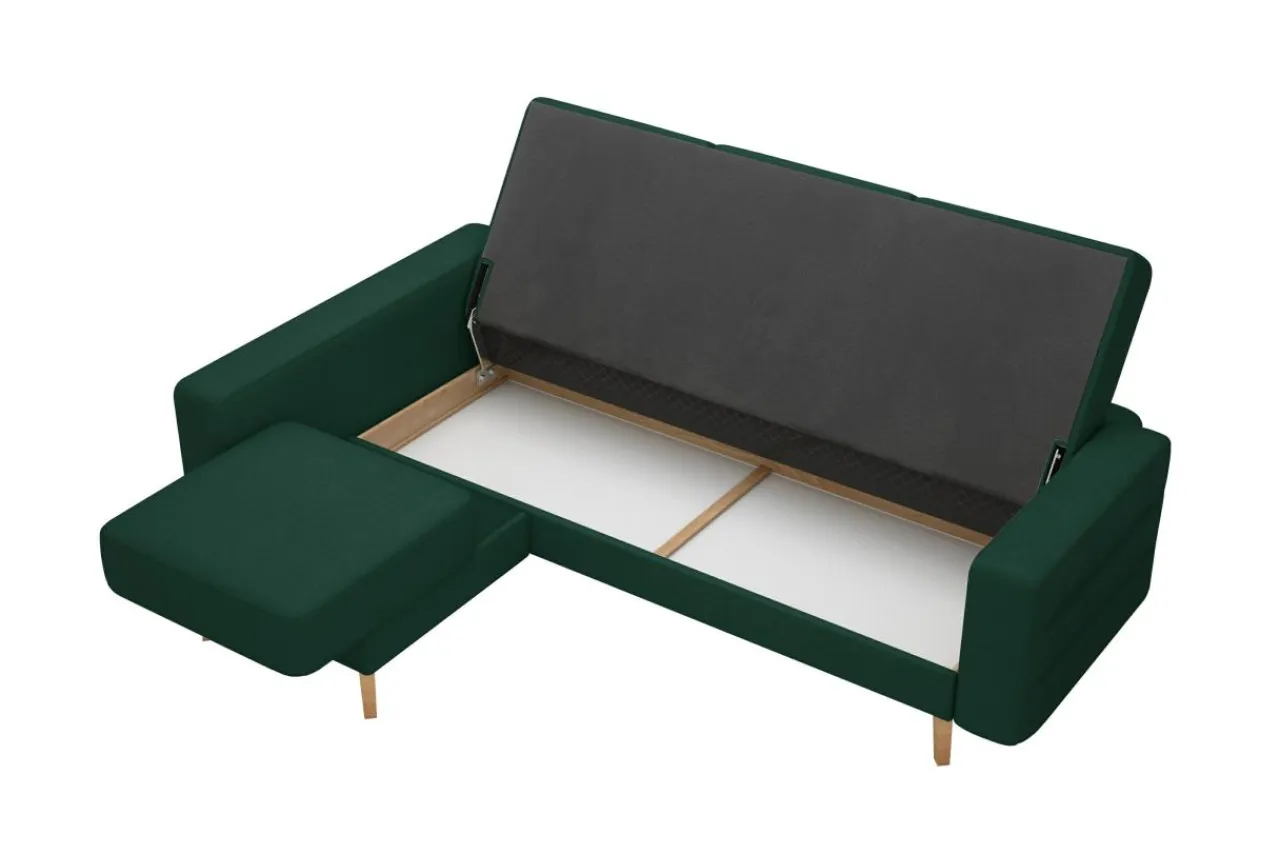 - Mechanizm wersalkowy pozwala na szybkie przekształcenie narożnika w okazjonalne miejsce do spania.