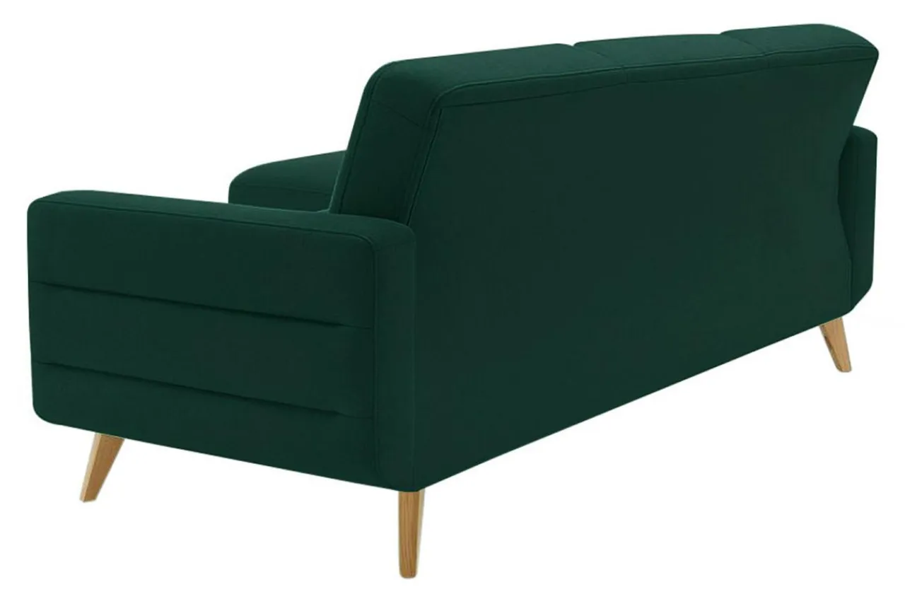 - Pikowane oparcie komponuje się z klasycznymi elementami wystroju. Drewniane nóżki i przeszycia na bokach sprawiają, że sofę wpasujesz w nowoczesne, retro wnętrza.