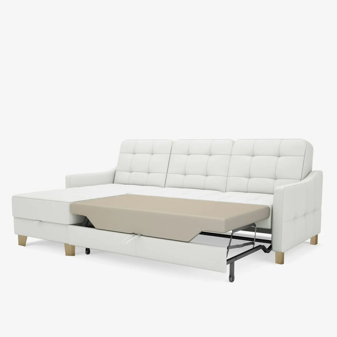 Funkcja spania nie wymaga odsuwania narożnika od ściany i jest łatwa w użytkowaniu, wbudowane weń sprężyny faliste i dodatek pianek sprawi, że jest bardziej wygodna.