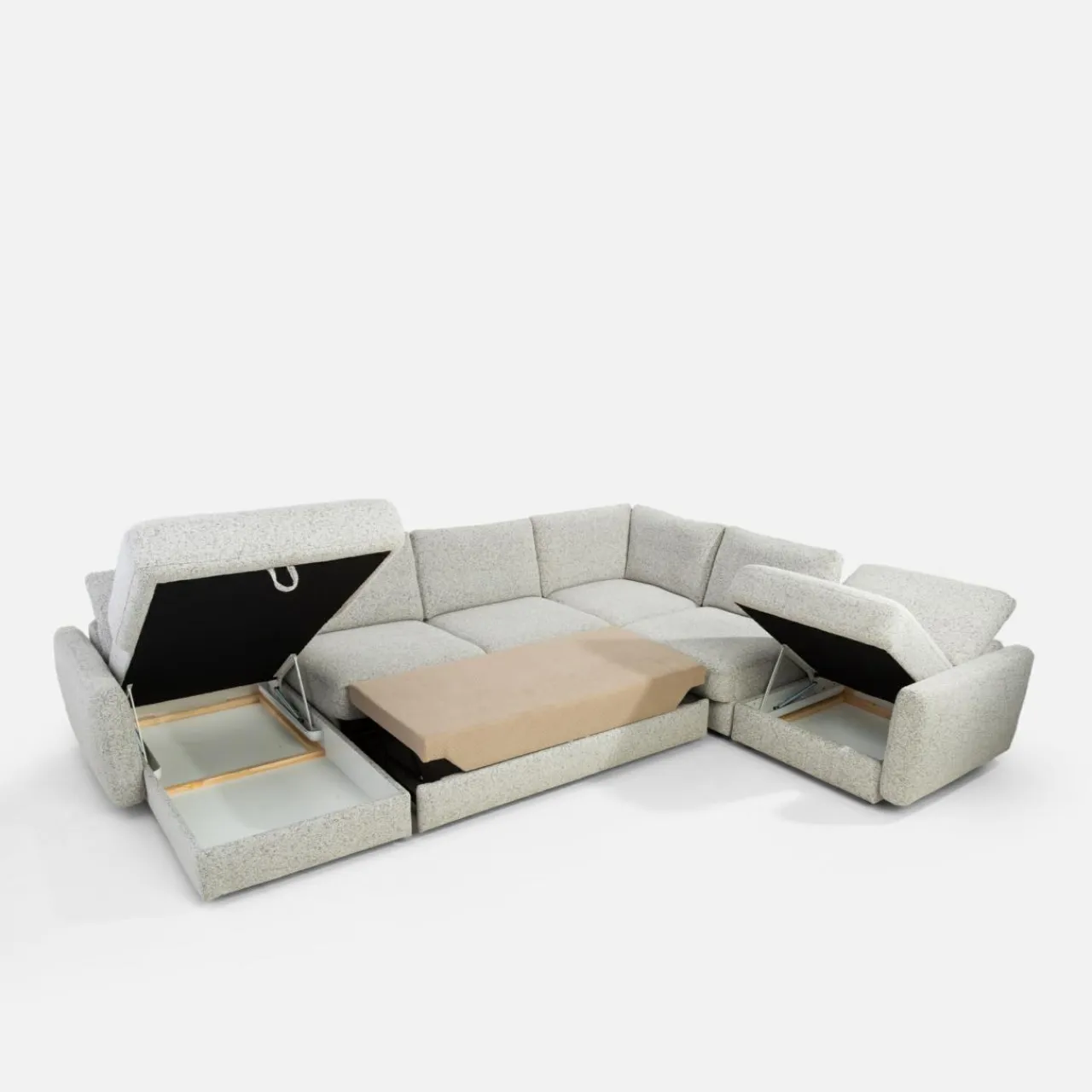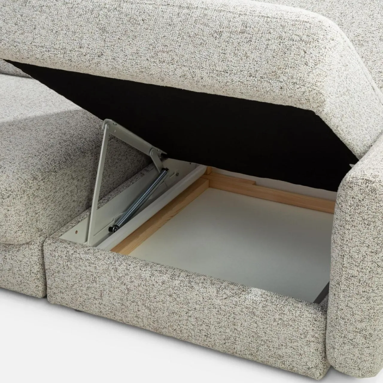 - 2 pojemniki: w leżance i pod jednym siedziskiem to większa przestrzeń na pościel i inne domowe tekstylia.