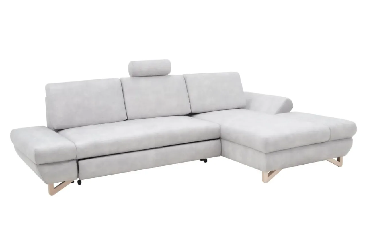 Narożnik AVESTA został przeszyty tkaniną SALLY – materiałem na bazie pluszu, miękkim i miłym w dotyku. Został wykonany w technologii Easy Clean, która ułatwia dbanie o czystość. Nogi mebla są drewniane, w kolorze dąb sonoma.