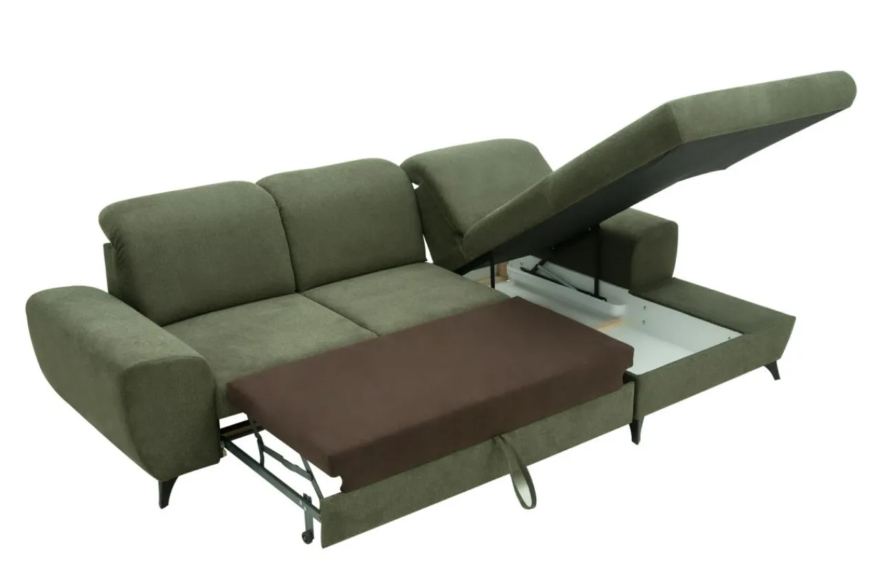 - Poręczny schowek znajduje się w otomanie narożnika. Po uniesieniu do góry siedziska pozwala szybko i bez zbędnego wysiłku wyciągnąć pościel.