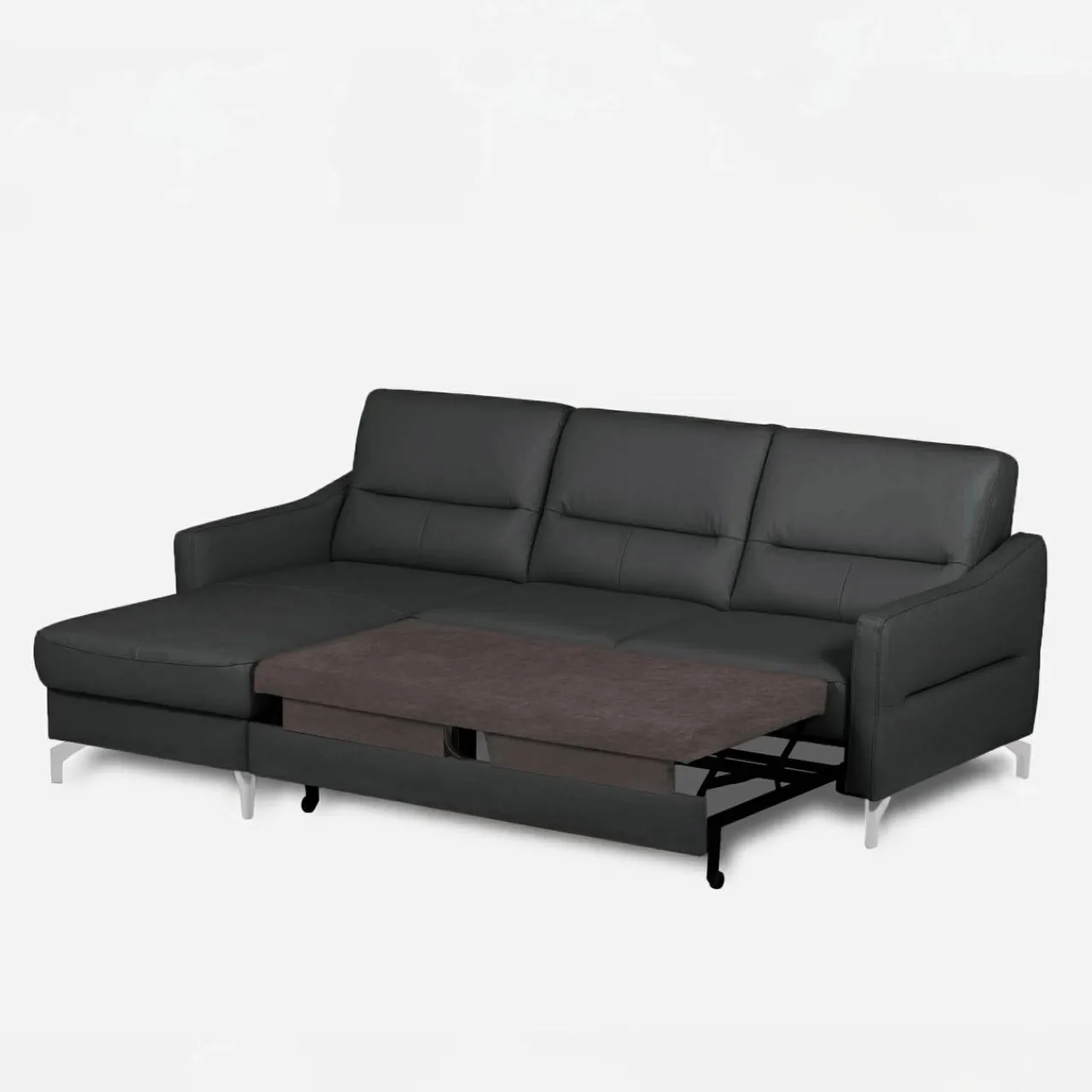 - Chromowane nóżki – podkreślają elegancki, współczesny charakter narożnika i dodają mu blasku, stając się stylowym elementem wnętrza.