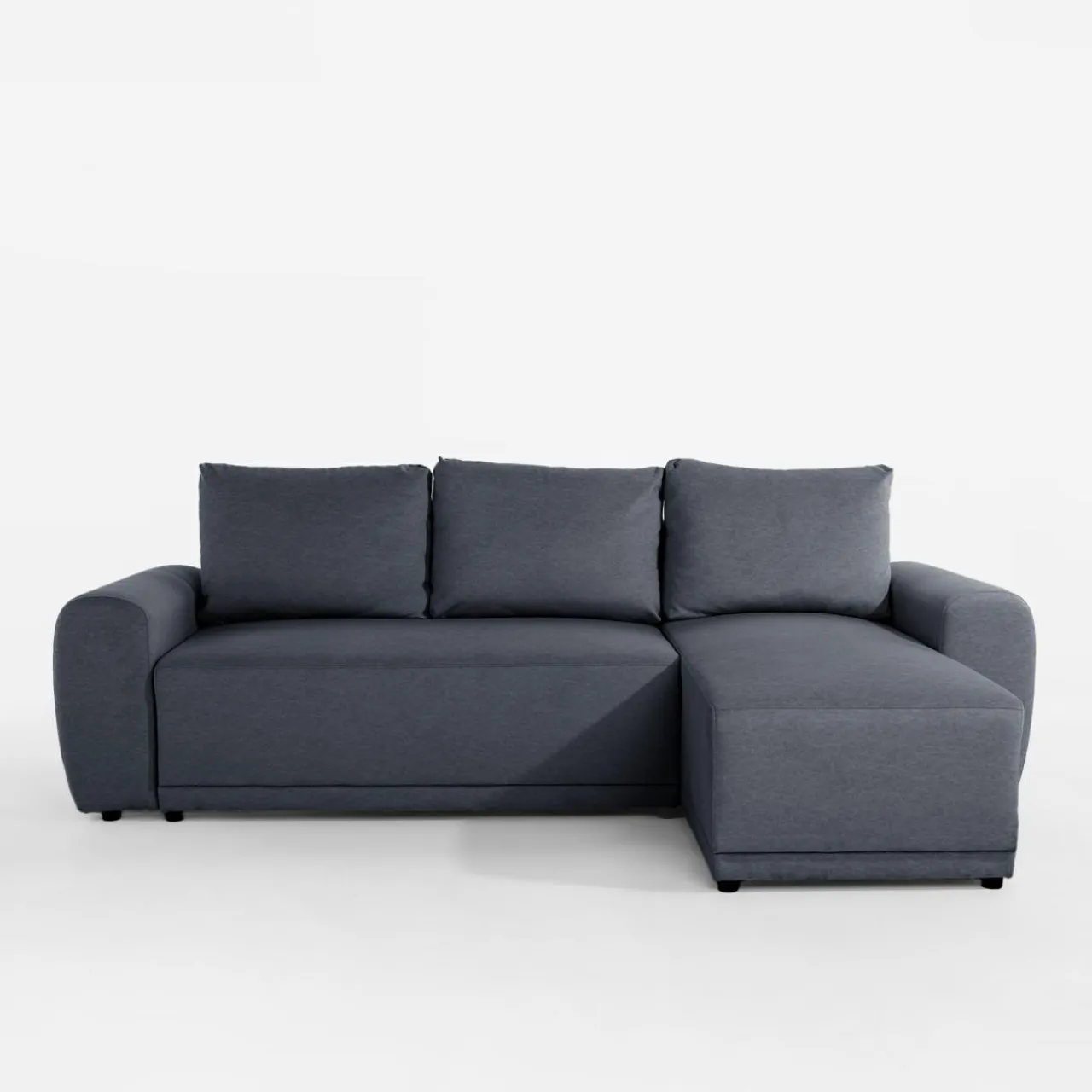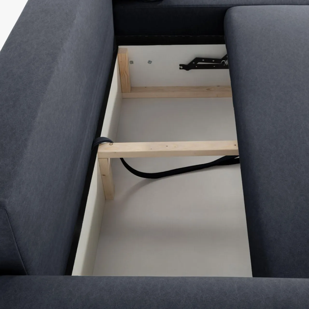 - W pojemniku pod siedziskiem wygodnie przechowasz pościel, koce lub inne domowe tekstylia. Dostęp do niego uzyskasz podczas rozkładania narożnika.