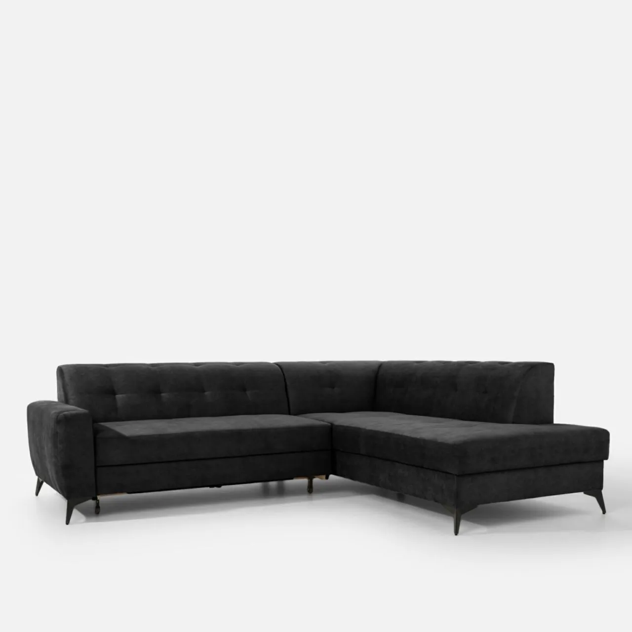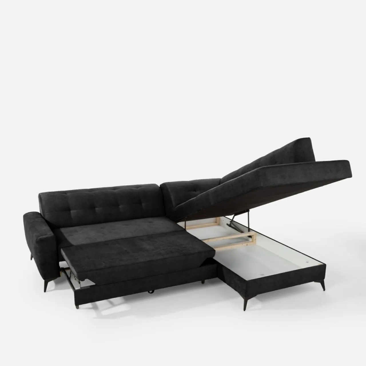 Stelaż pod siedziskiem wysuwamy i podnosimy za pomocą uchwytu. Mebel nie wymaga odsuwania od ściany. Idealny do okazjonalnego spania.