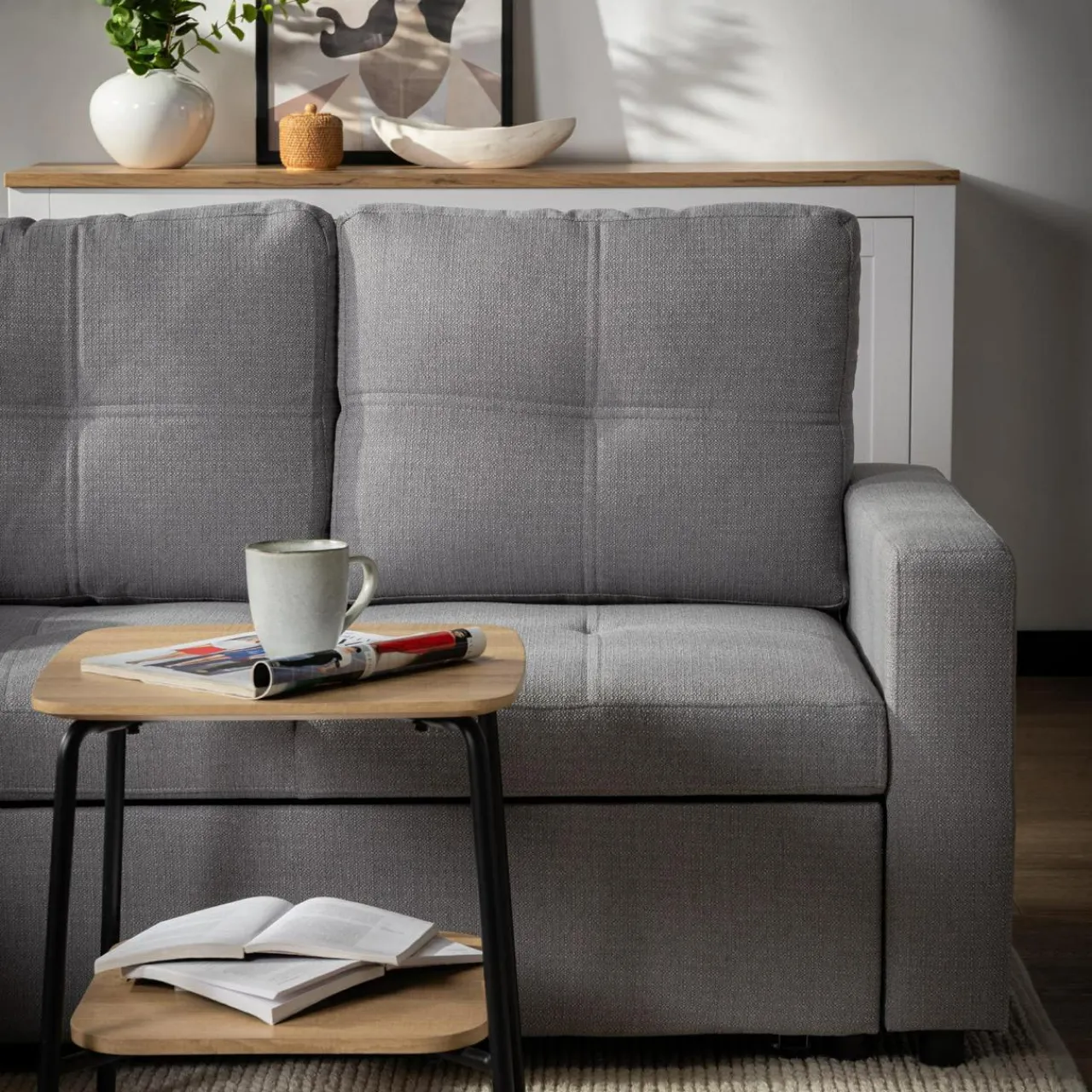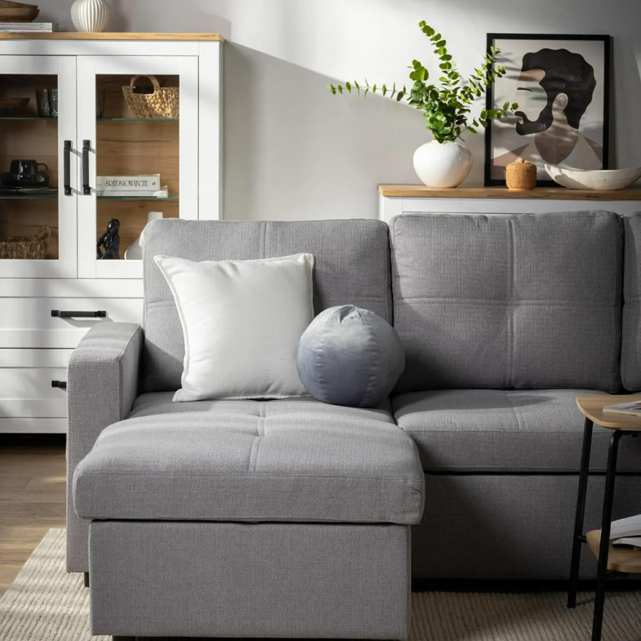 - Pojemnik w leżance da Ci przestrzeń na pościel lub inne domowe tekstylia. Możesz z niego korzystać, nawet jeśli narożnik będzie rozłożony.